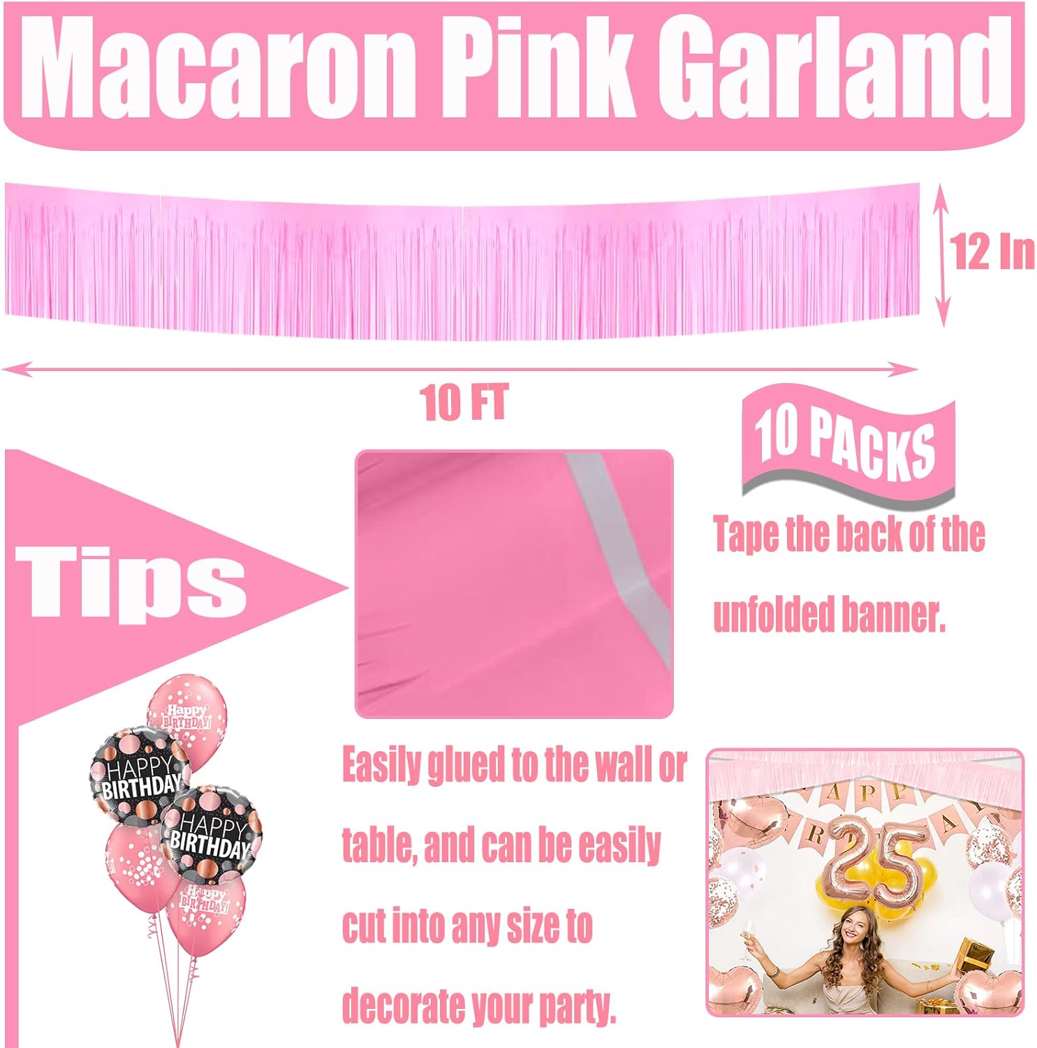 10 Pack 10 Feet Foil Fringe Garland Metallic Tinsel Streamers Banner Wall Hanging Curtain Backdrop for Parade Floats, Bachelorette, Wedding, Birthday, Halloween, Christmas Party Decorations(Pink)