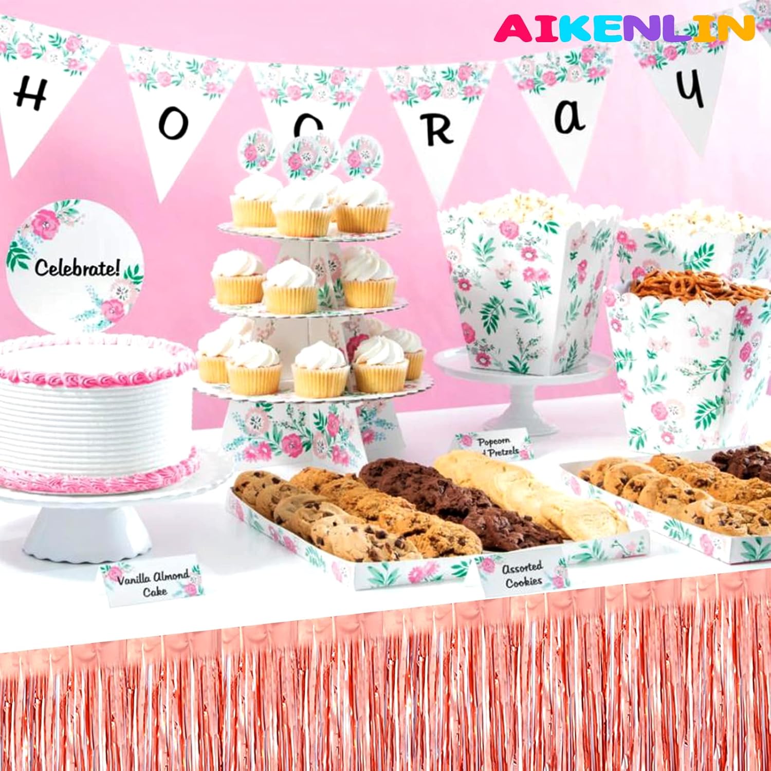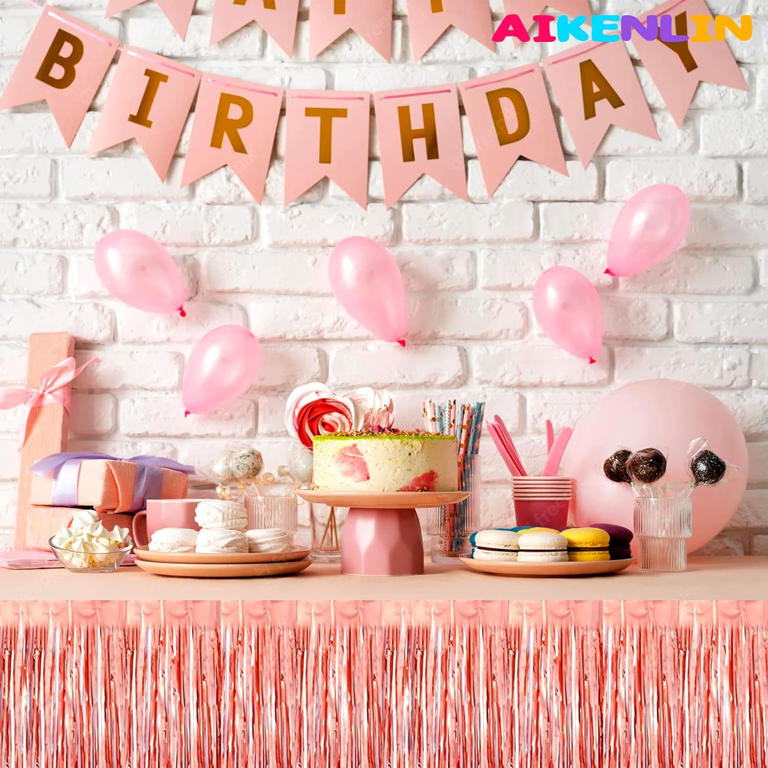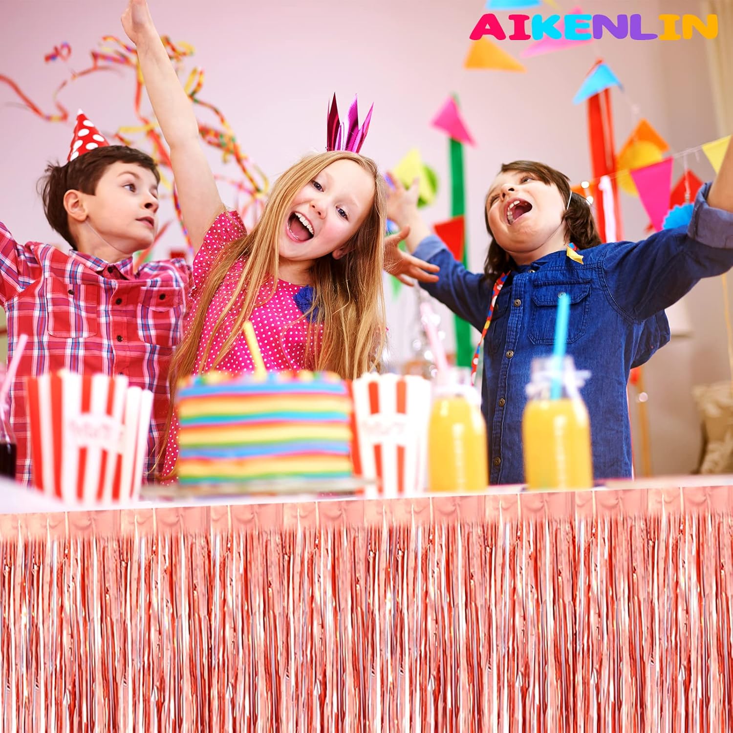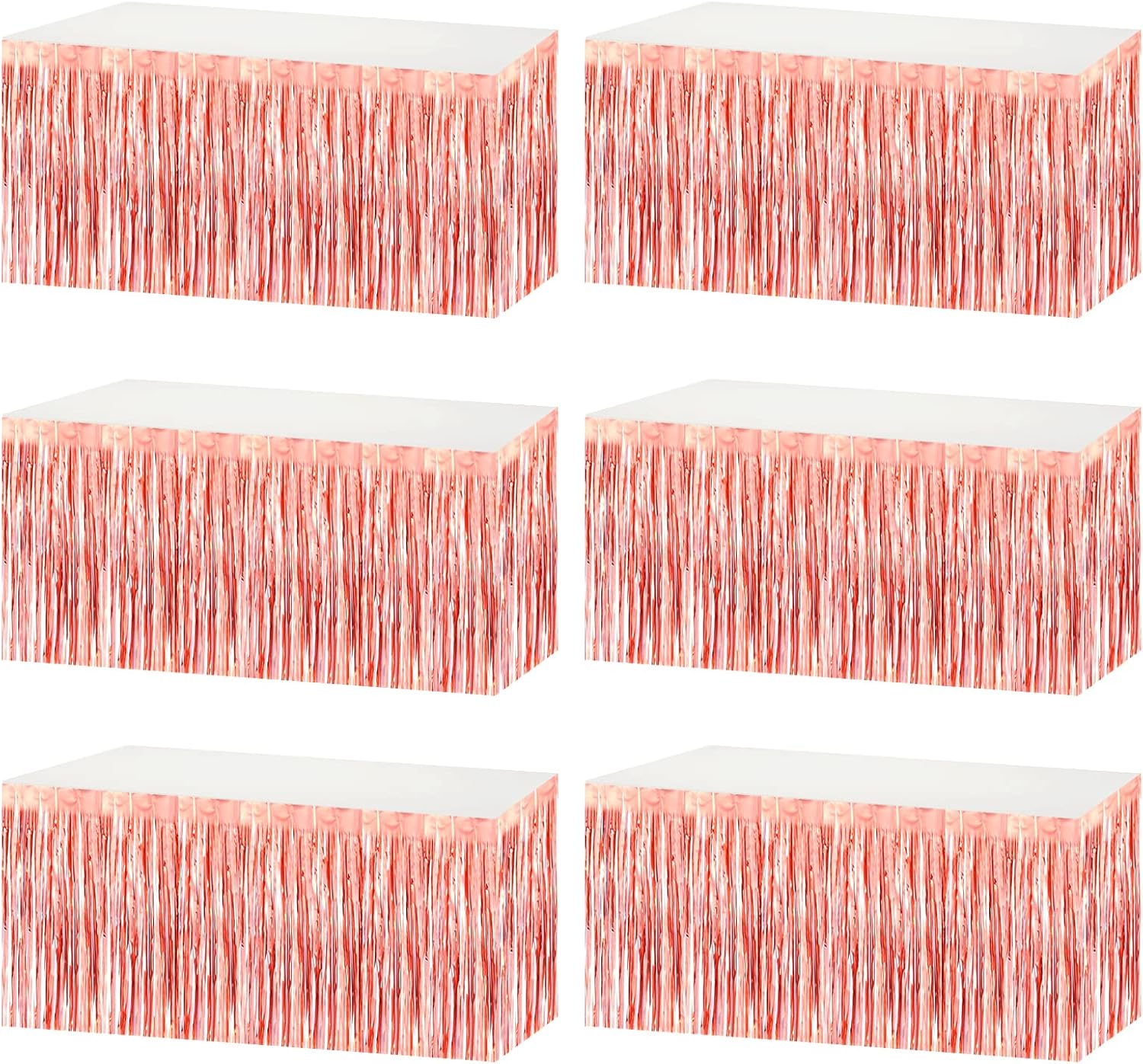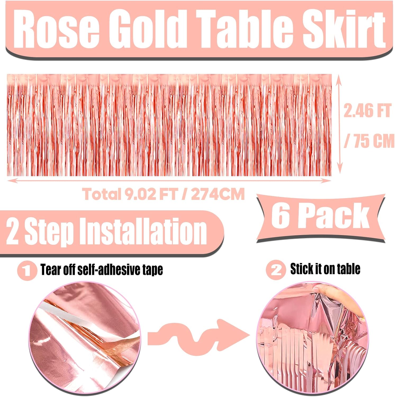 6 Pack 29x108 Inch Metallic Foil Fringe Tinsel Table Skirts Banner for Rectangle Tables Streamer Garland Curtains Backdrop for Wedding, Birthday, Parade Floats, Christmas Party Decoration(Rose Gold)