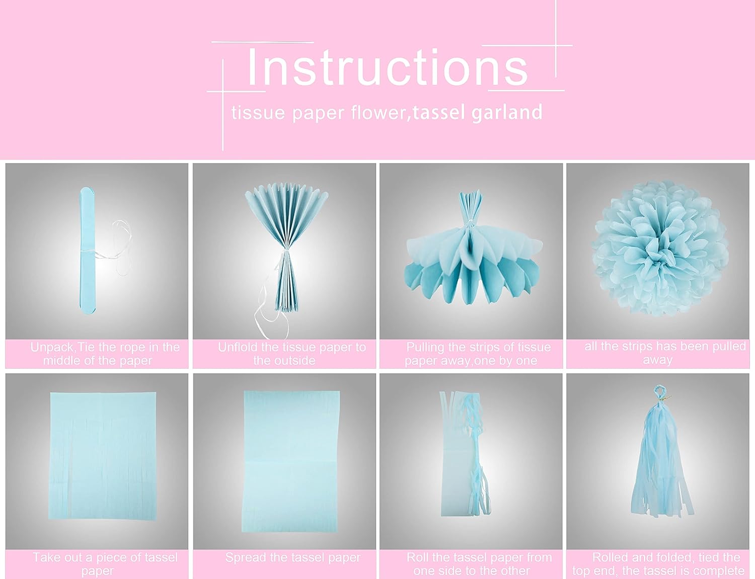 • 【DIY crafts】 The boy or girl banner and tissue pom poms decorations for party need to assembled. It will take about some times, please diy them in advance.