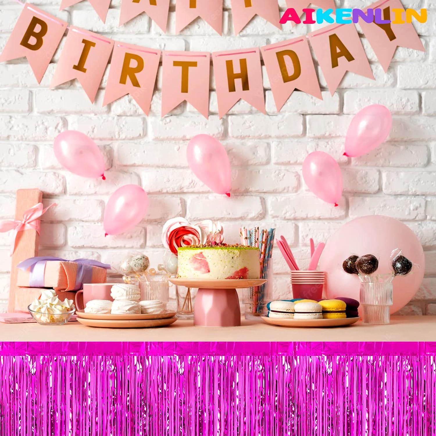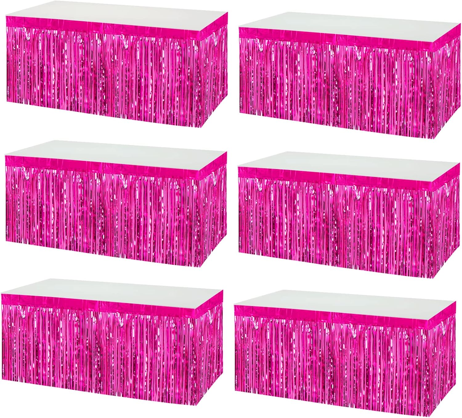 6 Pack 29x108 Inch Metallic Foil Fringe Tinsel Table Skirts Banner for Rectangle Tables Streamer Garland Curtains Backdrop for Wedding, Birthday, Parade Floats, Christmas Party Decoration(Fuchsia)