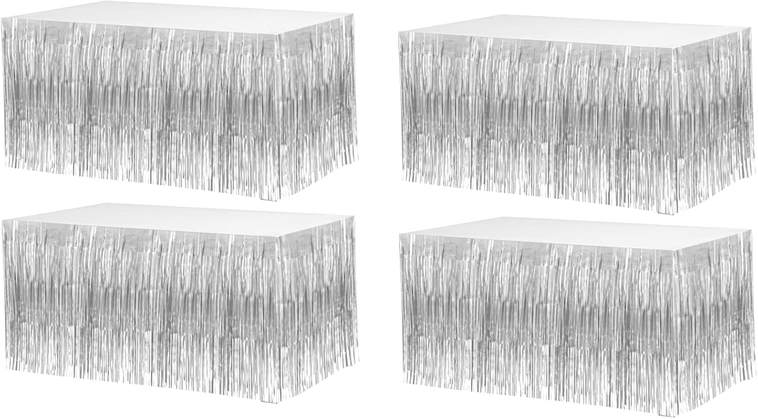 4 Pack 29x108 Inch Metallic Foil Fringe Tinsel Table Skirts for Rectangle Tables Streamer Curtains Backdrop for Wedding, Birthday, Parade Floats, Christmas, Halloween Party Decoration(Silver)