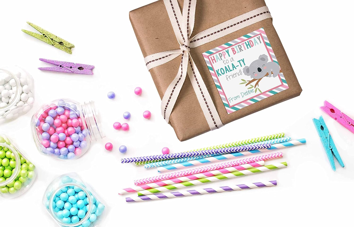 • Cuteness Overload: Designed by a talented mom, these fun stickers feature a cute koala design. The clever message of "KOALA-TY" birthday wishes is an adorable way to honor the birthday boy or girl. Each sticker will be custom printed and personalized just for you! Amanda Creation. Original design by Amanda Creation.