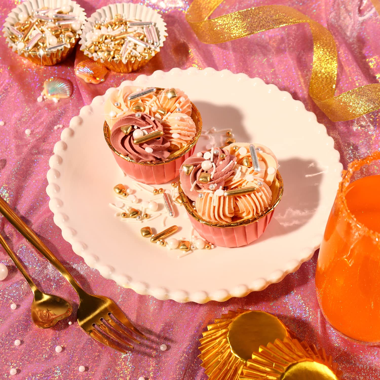 • SPARKLING SPRINKLE MIX - Sprinkles are available in gold, silver, white and consist of various shapes sizes of sprinkles! These sprinkles are perfect for wedding cakes or bridal party desserts. It contains gold and silver sugar pearls and sugar rods, white confetti, jimmies, nonpareils. Sprinkles them on cakes and desserts to create a luxurious and cheerful party atmosphere.