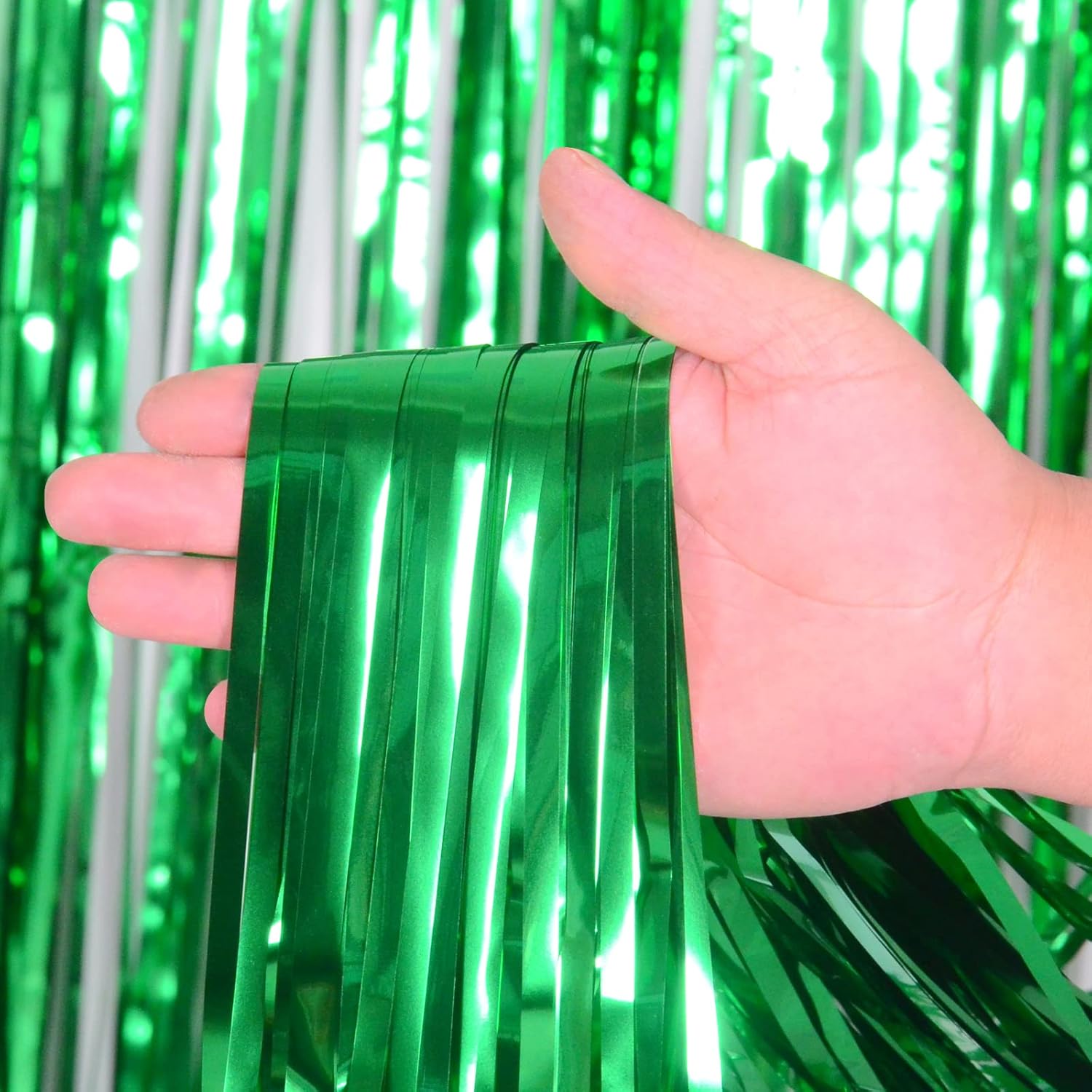 • Value Pack of 2: Includes 2 packs green foil fringe curtains, enough to decorate your party backdrop and save your money. Each curtain is 3.2ft x 8ft. You can use 2 packs of the curtains side by side to make the backdrop larger, or overlap 2 pack of curtains to achieve a fuller and better look.