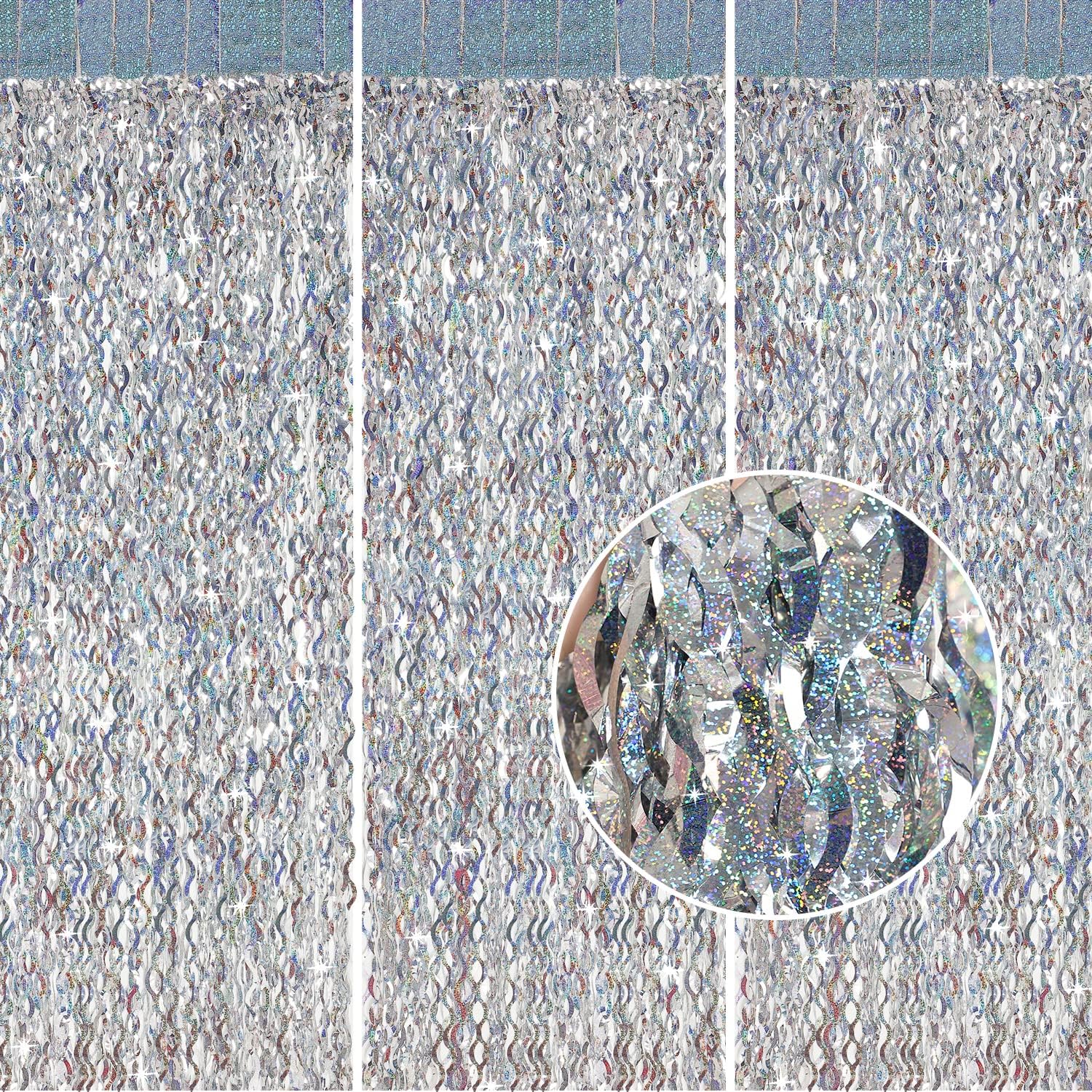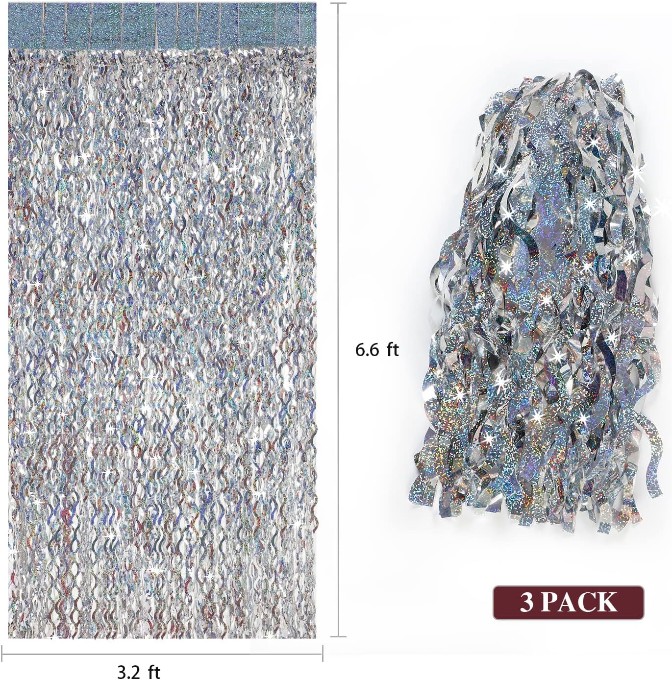 • Packing Included: 3 packs silver tinsel foil fringe curtains party photo backdrop, Each pack curtains size is 3.3ft x 6.6ft, enough length for decorate your party
