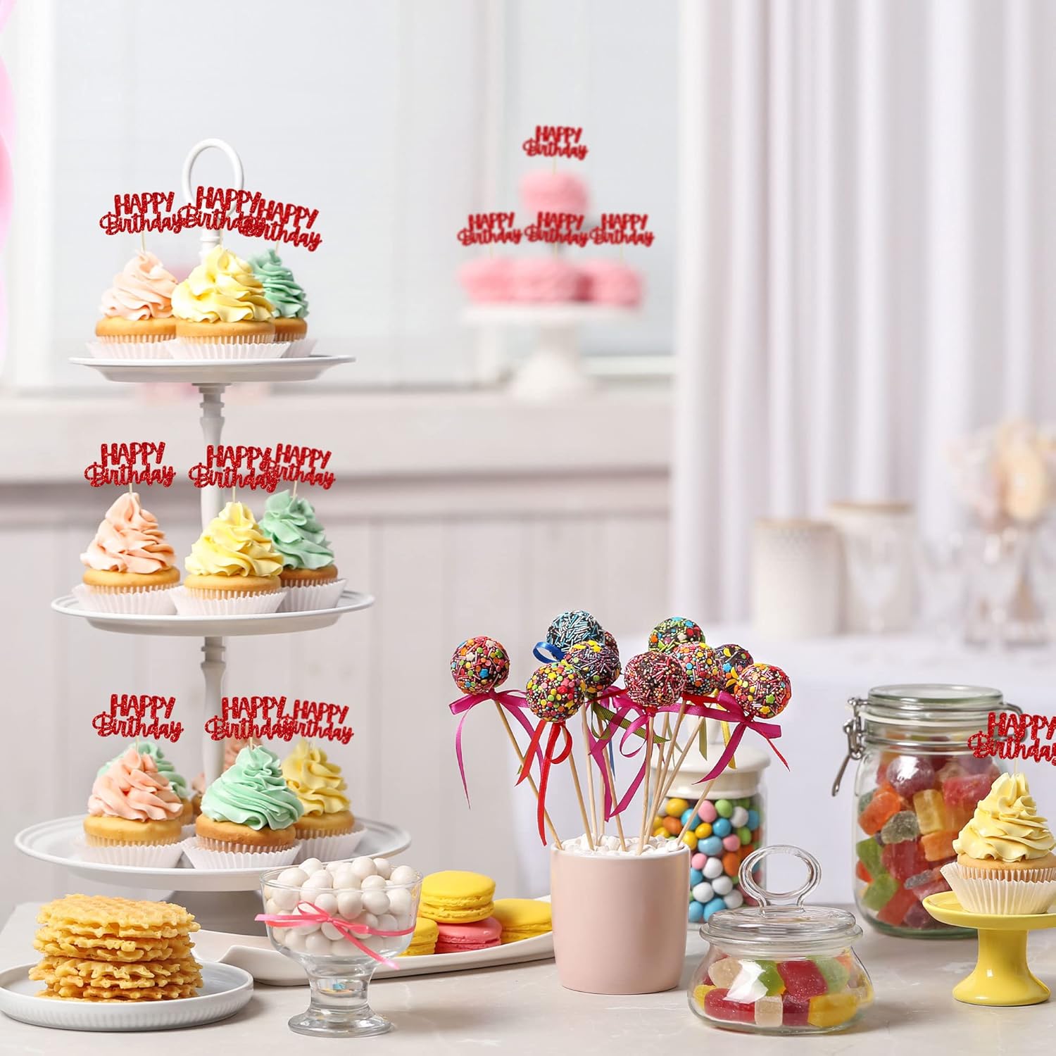 • 🌟 Premium Material: These glitter happy birthday cupcake Toppers are made of high quality paper and food-grade toothpick, very safe to put them on cakes, cupcakes, ice cream, fruits, pie, dessert, cheese or any dish and food appetizer you want to decorate.