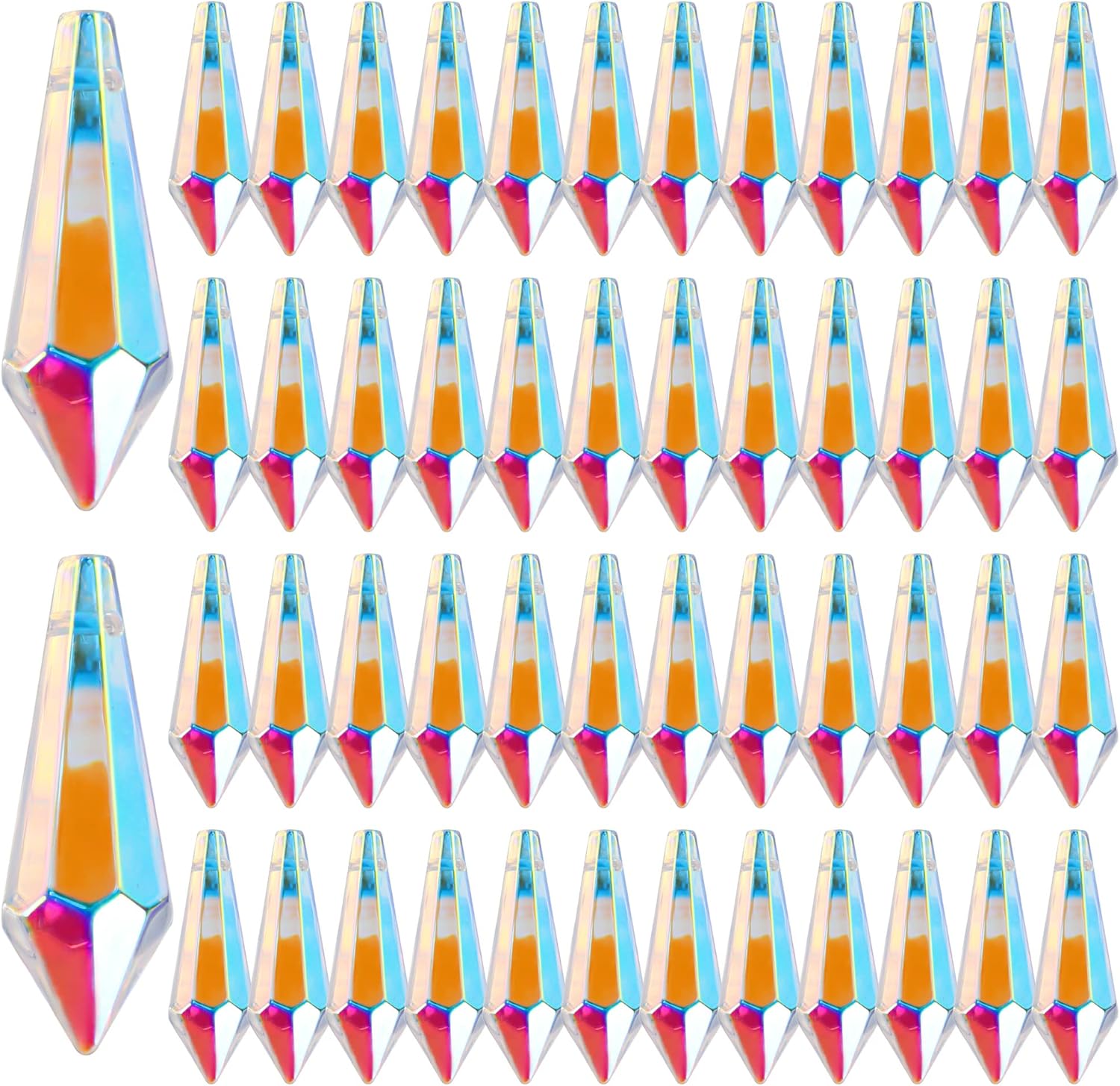 50pcs 38mm Suncatcher Crystal Icicle Prisms Pendant, Icicle Chandelier Crystals Pendants Drops Lamp Candle Holders Curtain DIY Parts Sun Catcher(AB Colors)