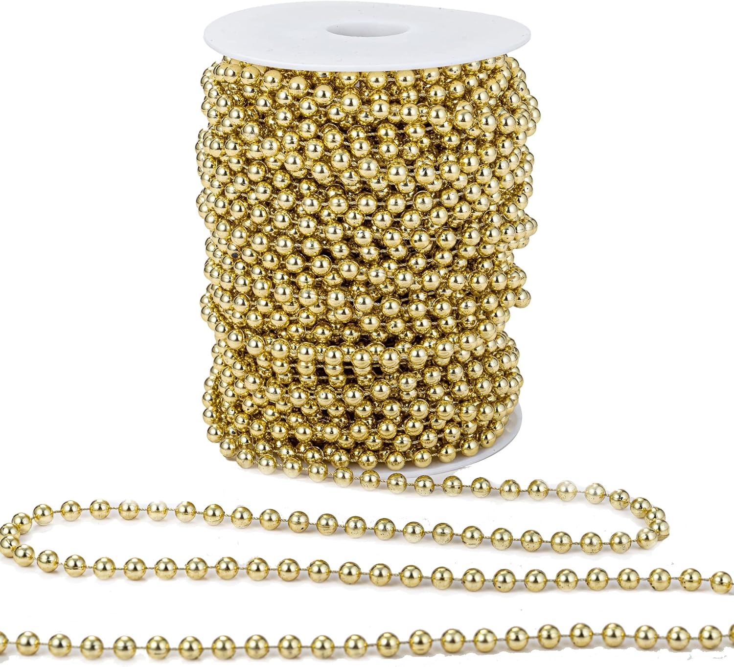 6mm Crafts Faux Pearl Beads Garland Pearl Bead Roll Strand of Pearls to Decorate Floral Centerpieces Wedding Party Favor Christmas Tree(82 Feet Gold)