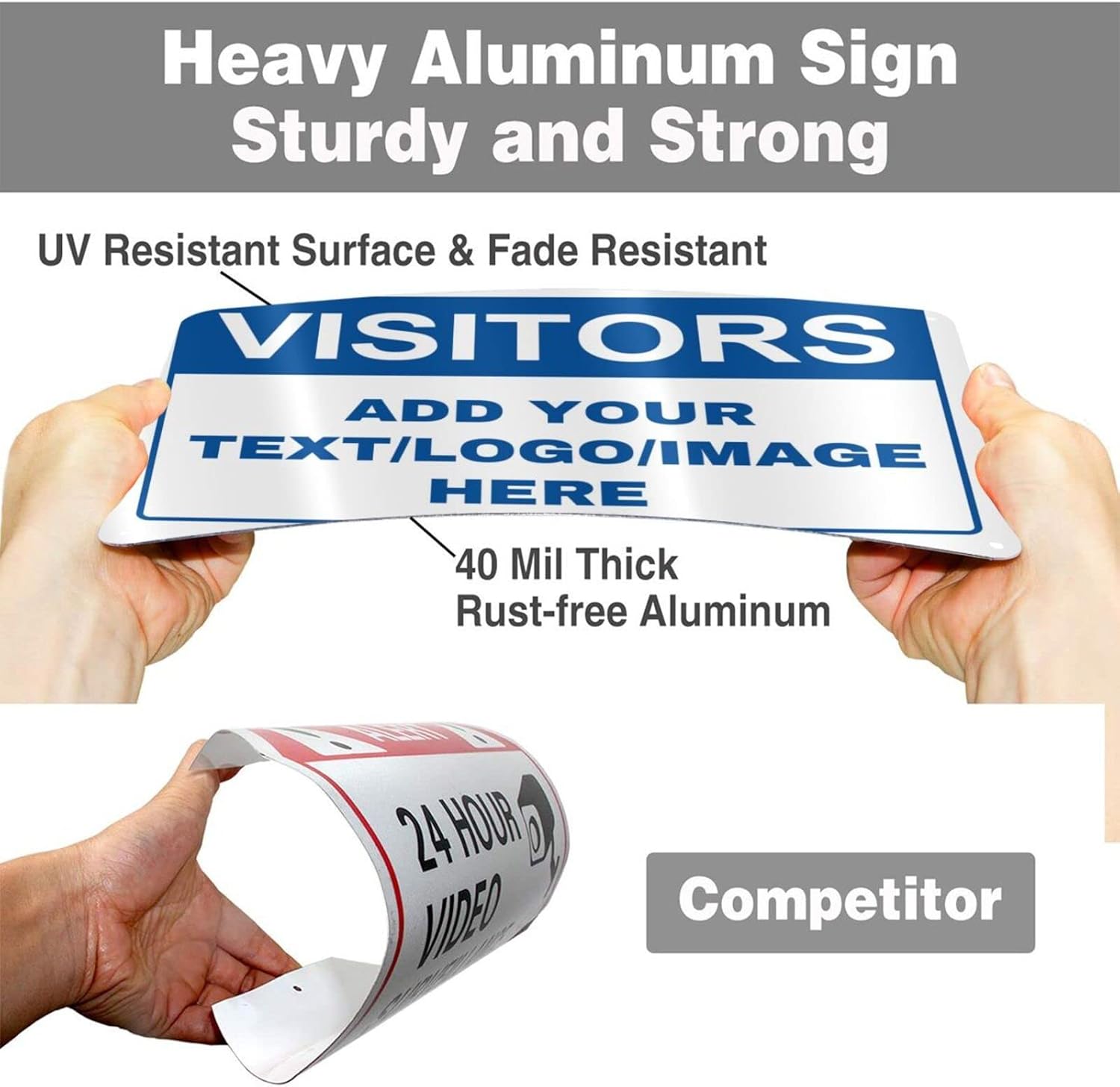 Custom Signs Outdoor Metal - 12 x 8 Customized Personalized Aluminum Signs for Office, Home, Business, Decor, Custom Rust-Proof Sign (VISITORS)