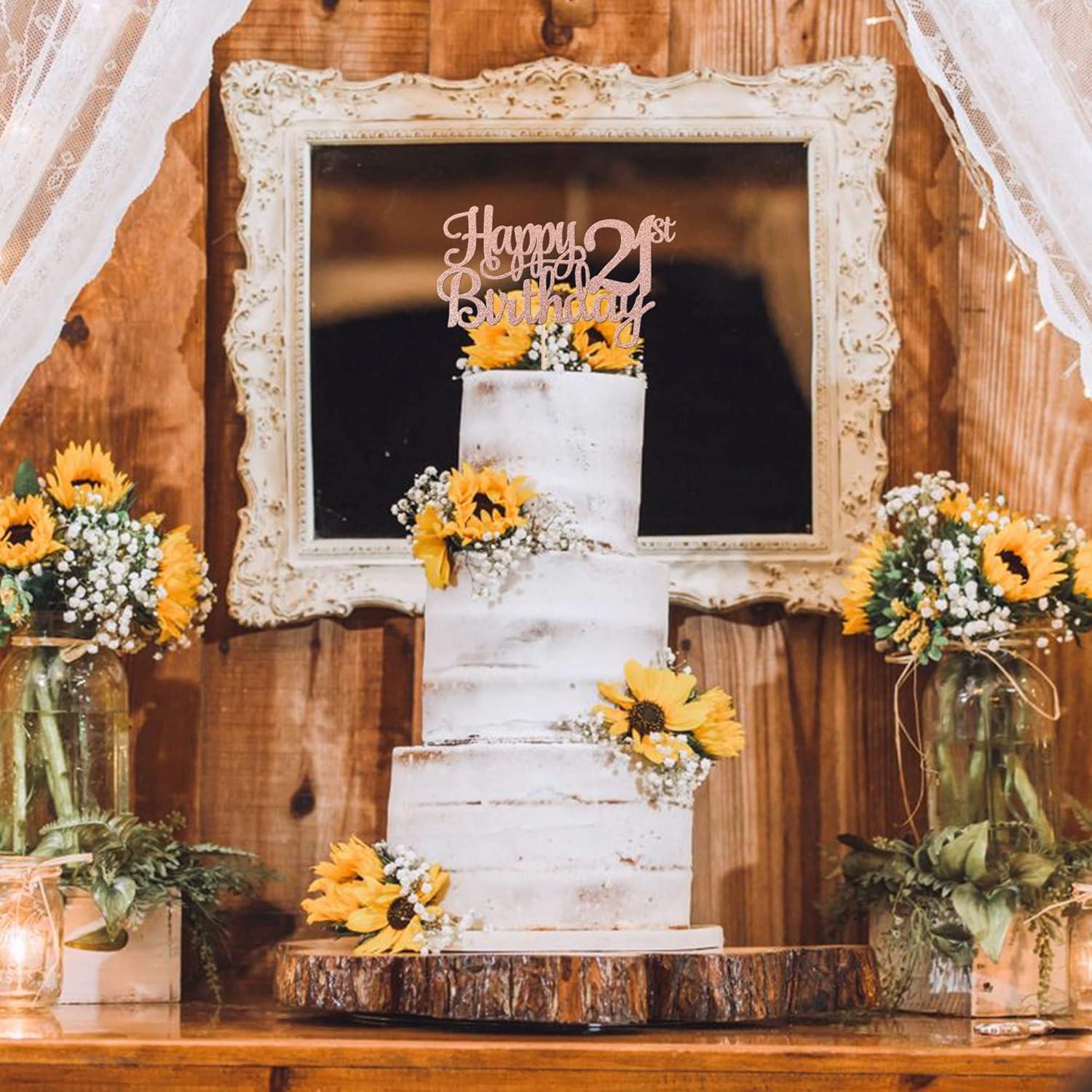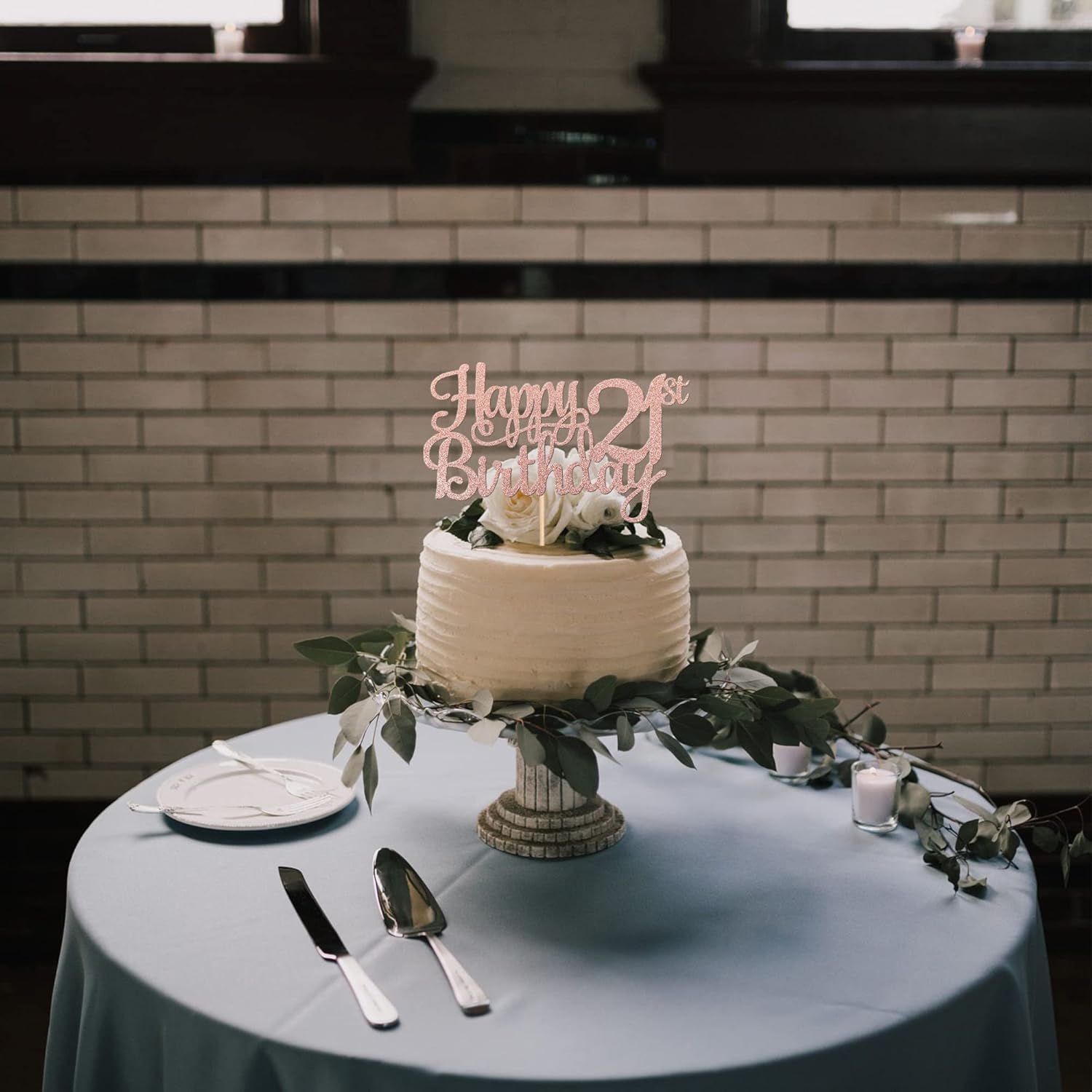 1 PCS Happy 21st Birthday Cake Topper Glitter Cheers to 21 Years Cake Pick Number 21 Fabulous Cake Decoration for 21st Birthday Theme Party Decorations Supplies Rose Gold