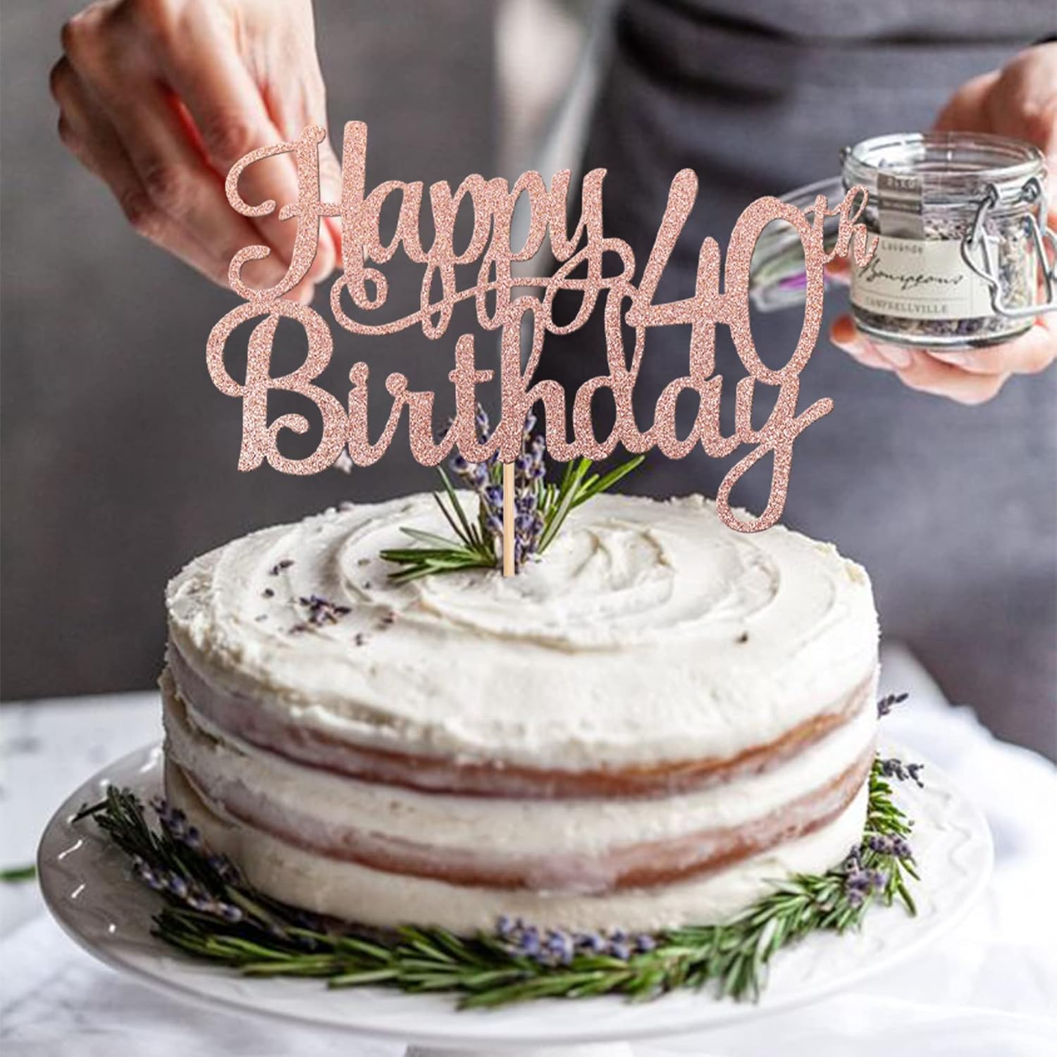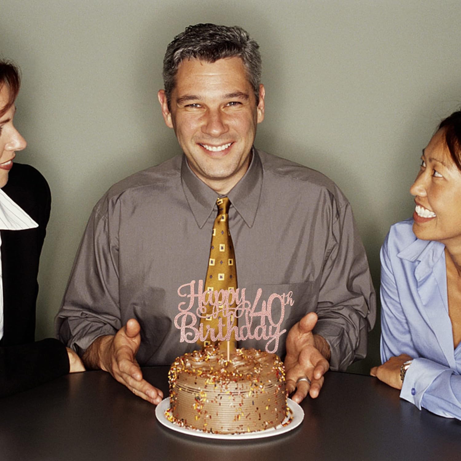 1 PCS Happy 40th Birthday Cake Topper Glitter Cheers to 40 Years Birthday Cake Pick 40 Fabulous Cake Decoration for Happy 40th Birthday Anniversary Party Decorations Supplies Rose Gold