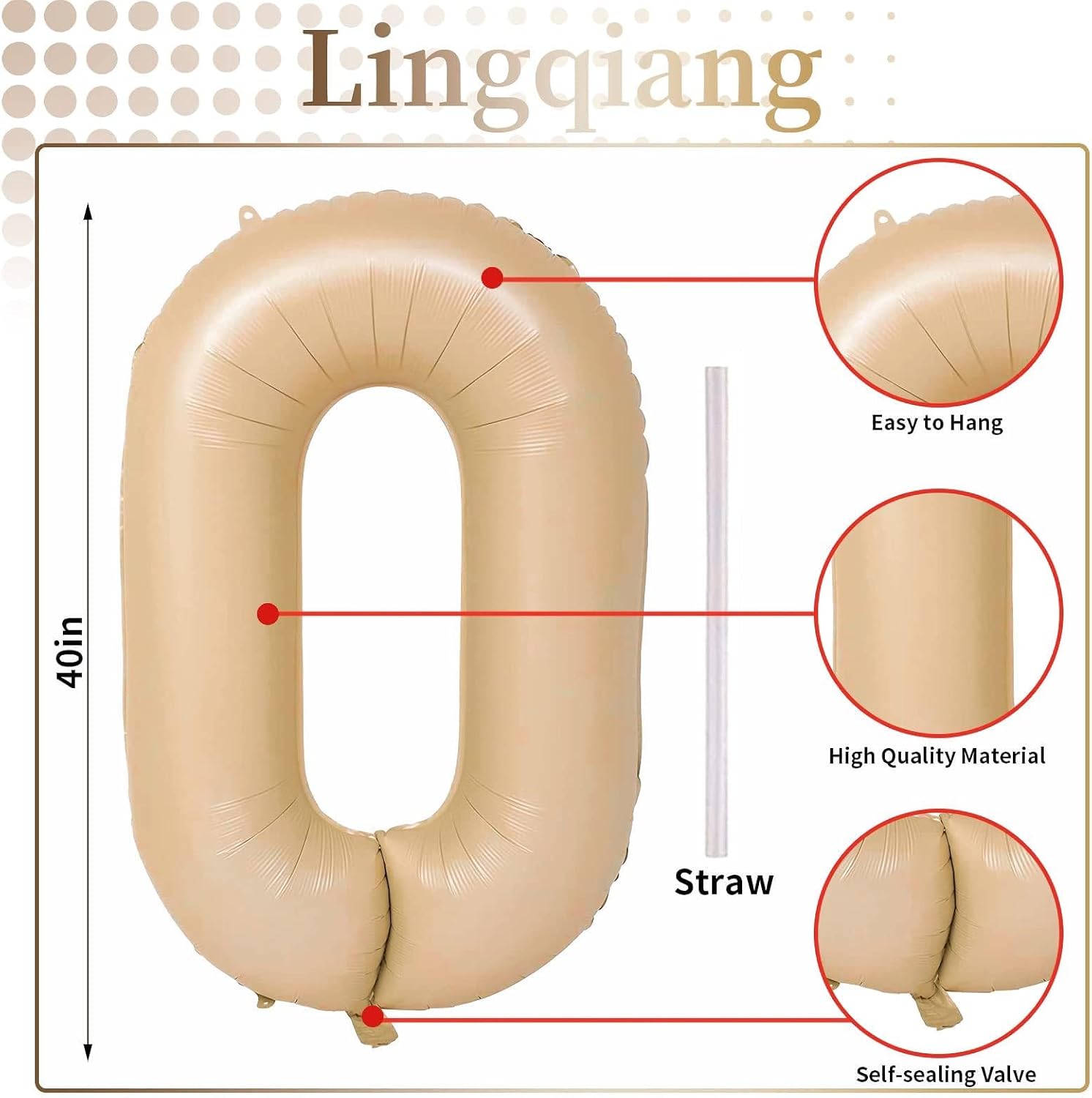 • 🎉 Easy to Inflate 🎉 - The big light brown number 0 foil balloons have self-sealing valve does not need to be knotted for easy inflation and deflation. It can be inflated with air or helium. When filled with helium, the balloons can float in the air; after filling, press the valve of the digital balloon to seal it. It can be reused. Do not throw away after use!