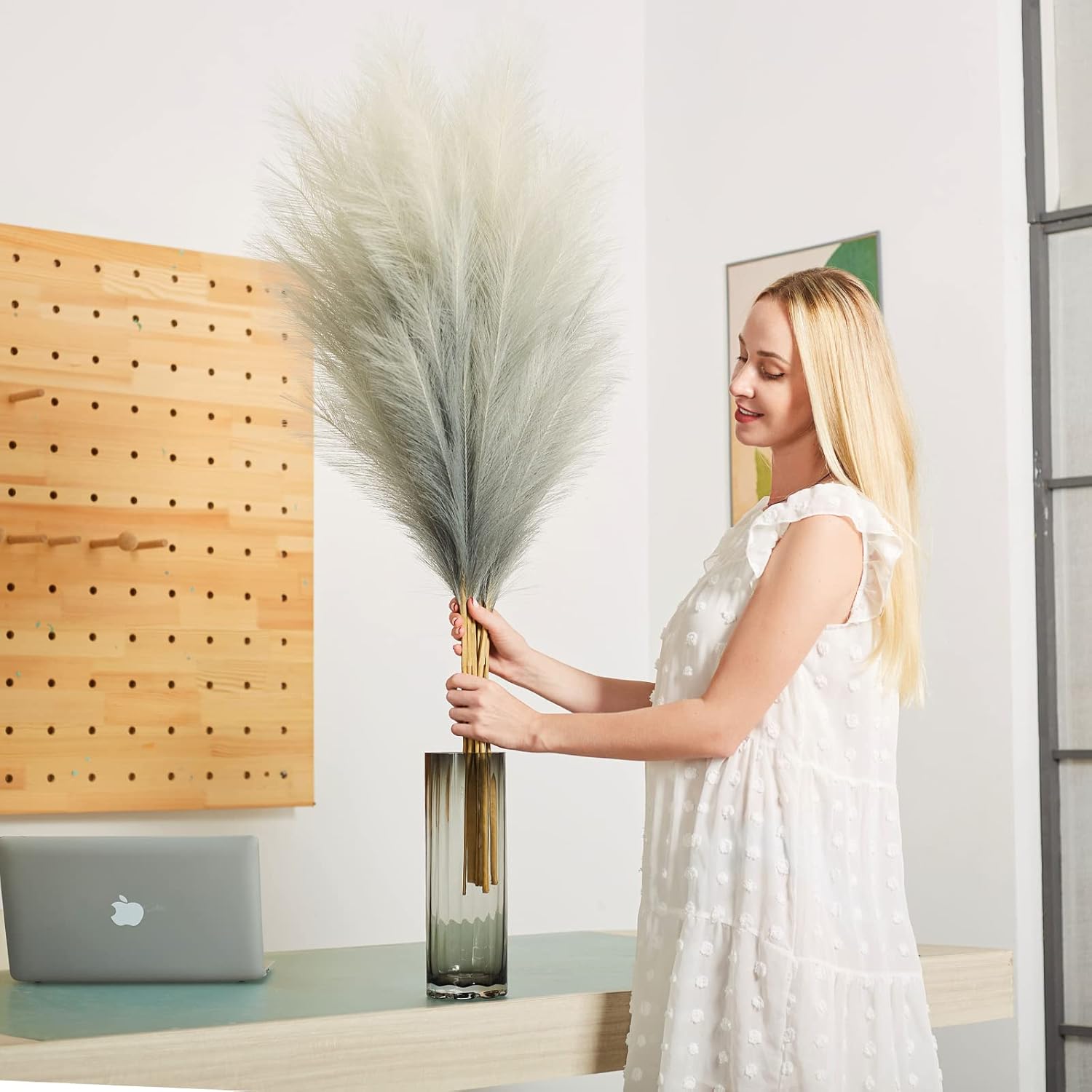• Minimalistic and Elegant Decor Piece: Really nice faux pampas grass for home decor, display in your hallway, kitchen, living room, bedroom, front room, dining room or entry way... any space.They are also a great addition to wedding, flower arrangements, lifestyle photography, party, bohemian decorate and etc