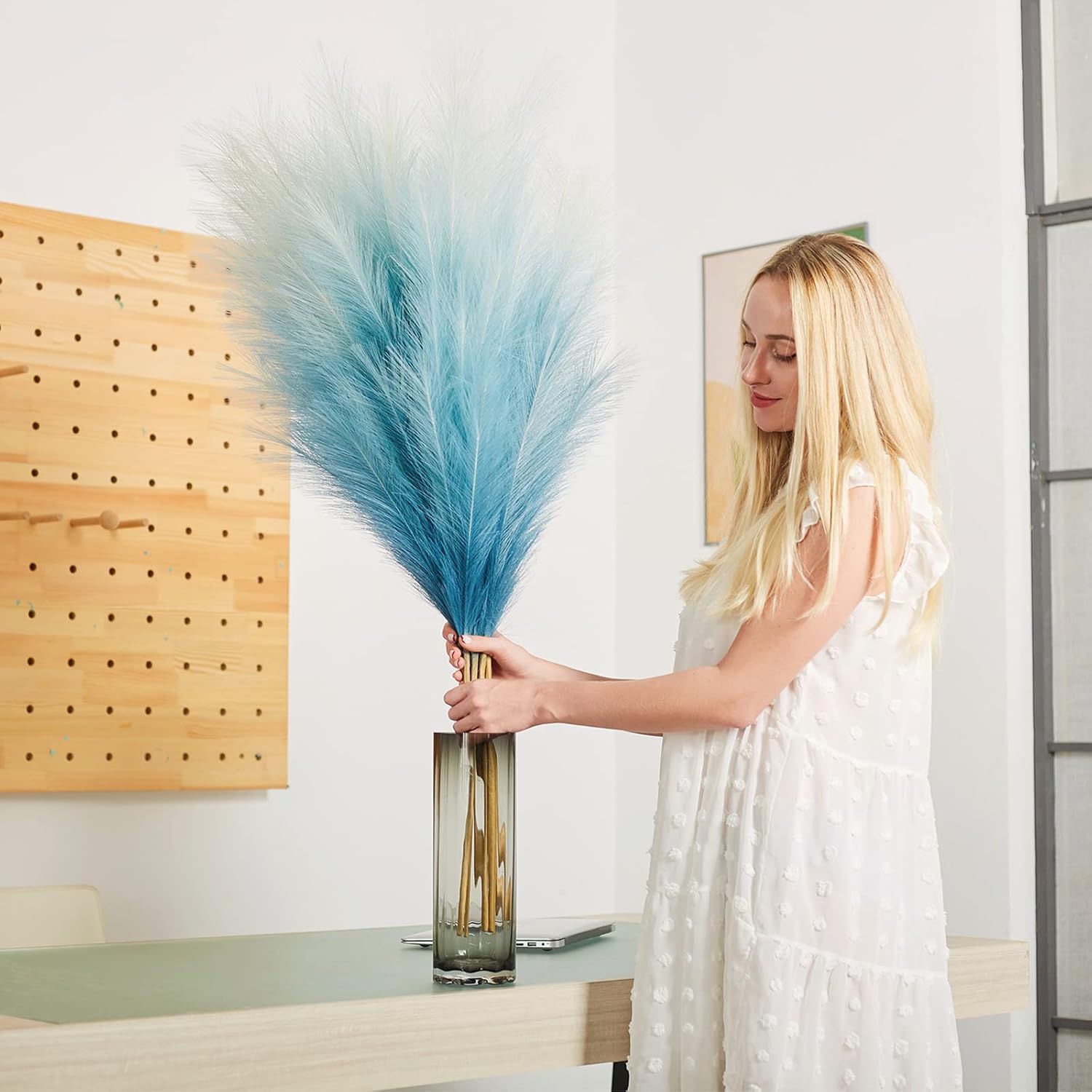 • Minimalistic and Elegant Decor Piece: Really nice faux pampas grass for home decor, display in your hallway, kitchen, living room, bedroom, front room, dining room or entry way... any space.They are also a great addition to wedding, flower arrangements, lifestyle photography, party, bohemian decorate and etc