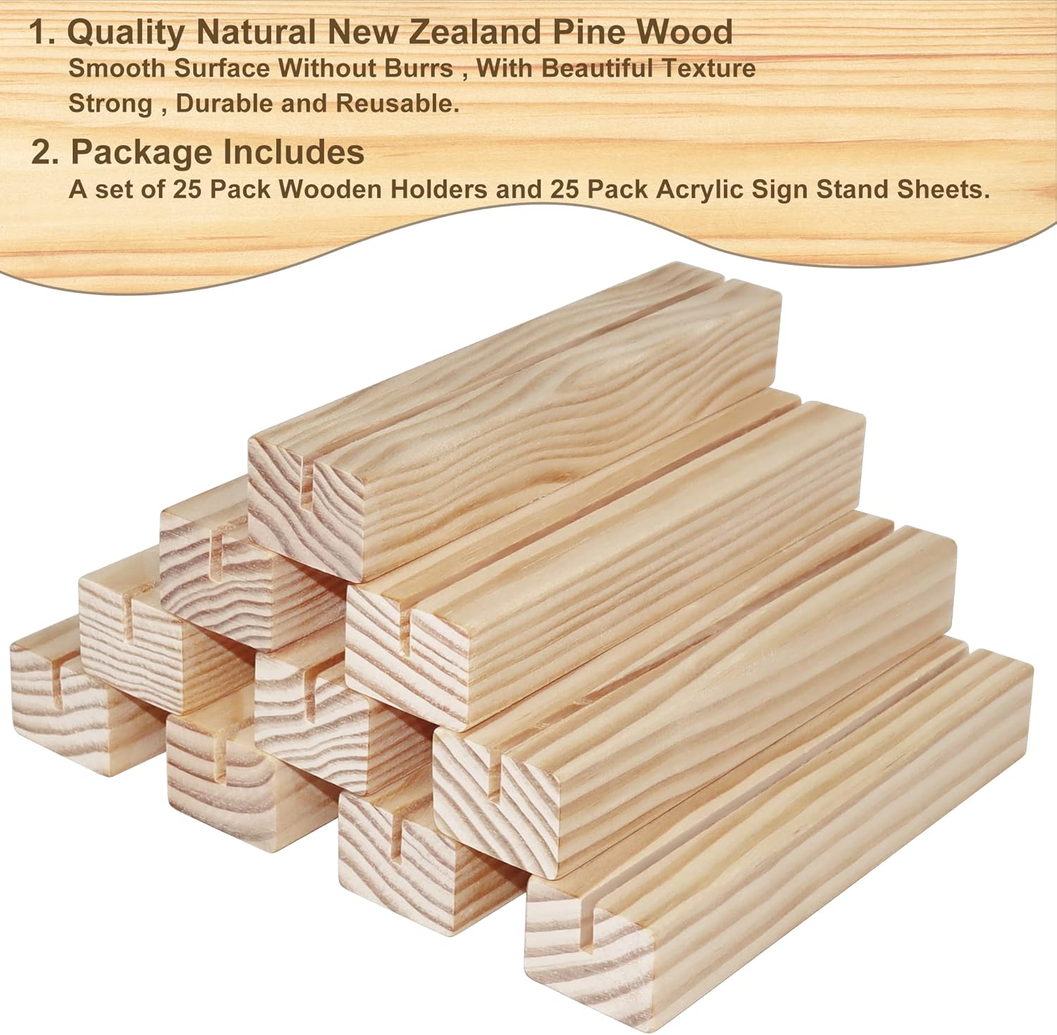 Wedding Table Numbers 1-25, Acrylic Arch Signs with Natural Wood Stands Holders, Rustic Table Decor for Reception & Parties (White Black)