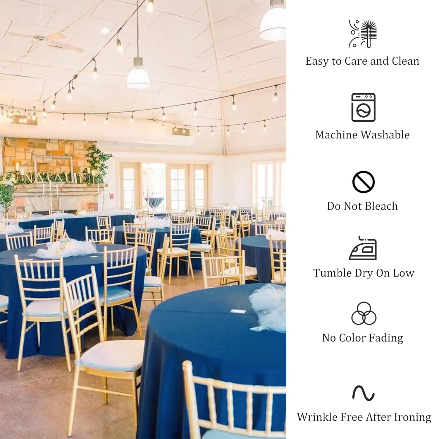 • Easy to Clean: these circle tablecloth are easy to clean, machine washable and hand washable, tumble dry on low, won't fade, won't tear easily, no bleach, wrinkle free after Ironing, easy to care than most cotton tablecloth. Simple ironing after cleaning will keep them looking new.
