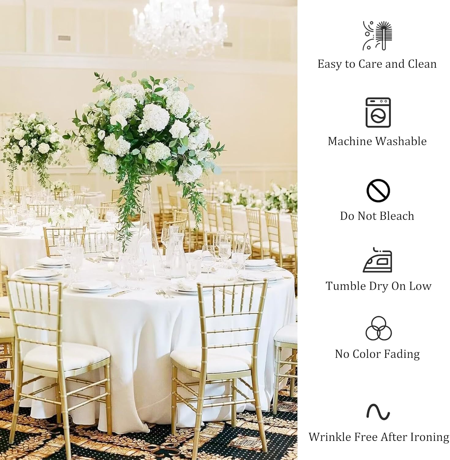 • Easy to Clean: these circle tablecloth are easy to clean, machine washable and hand washable, tumble dry on low, won't fade, won't tear easily, no bleach, wrinkle free after Ironing, easy to care than most cotton tablecloth. Simple ironing after cleaning will keep them looking new.