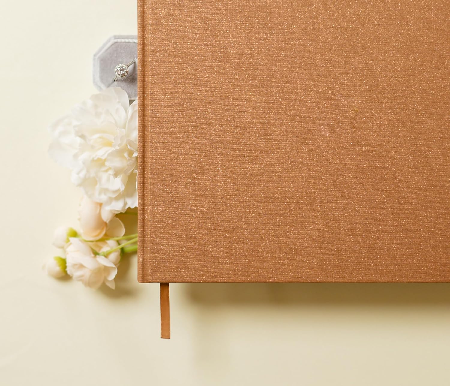 MUUJEE Personalized Guestbook in Bronze Shimmer - Premium Custom Modern Guest Book for Wedding Reception, Birthday Party or Events w/Bookmark Blank Pages for Signing 11.5 x 8.5 inches