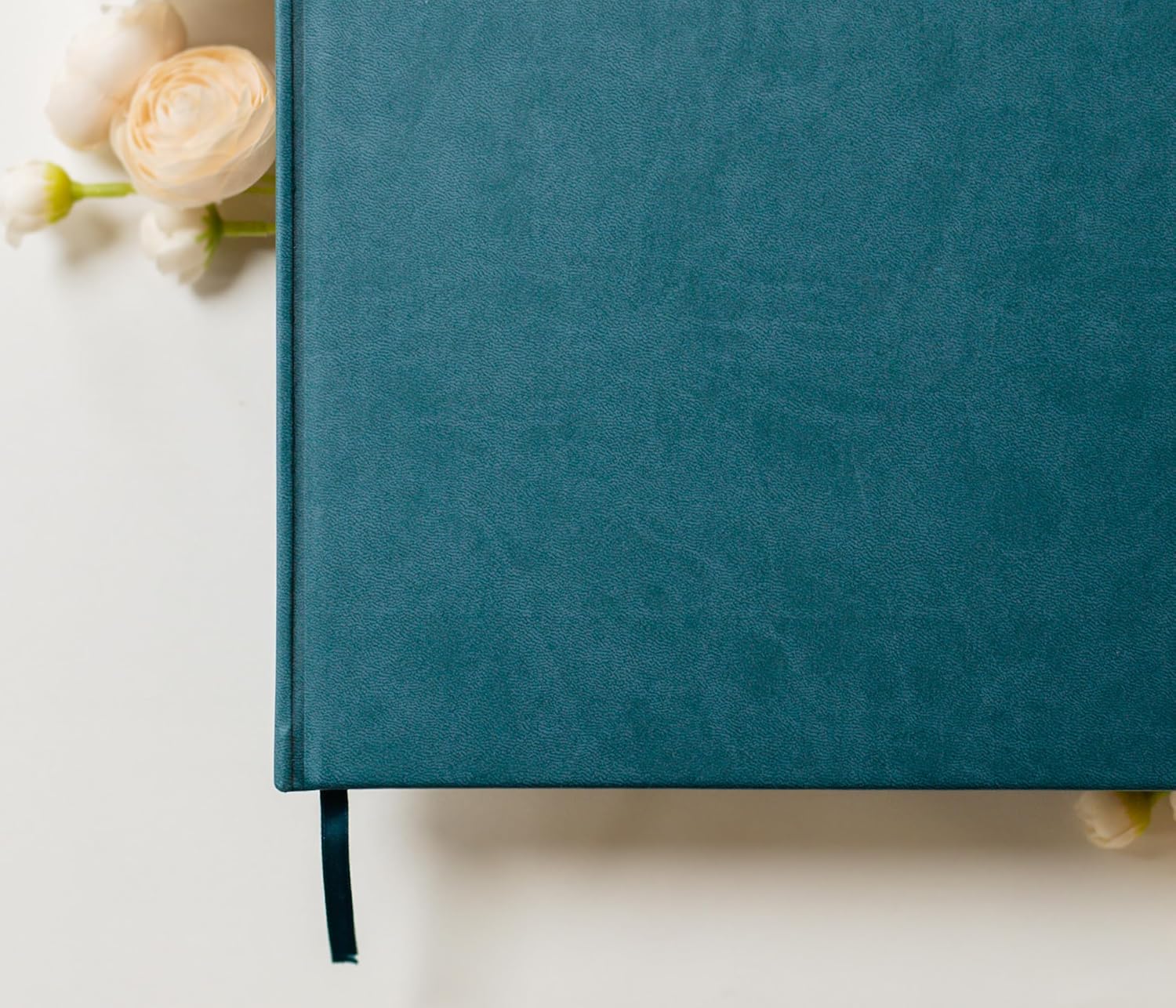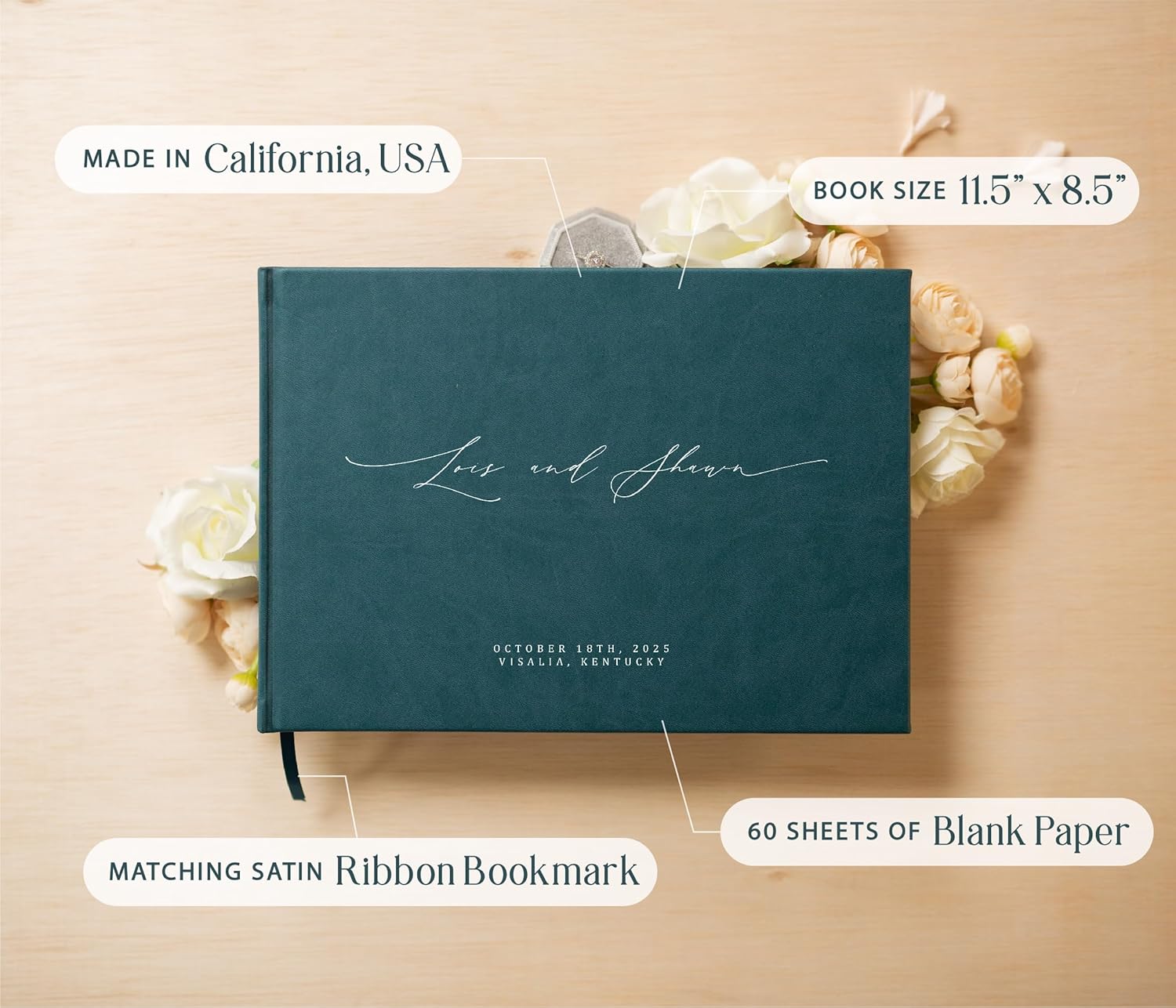 MUUJEE Personalized Guestbook in Teal - Premium Custom Modern Guest Book for Wedding Reception, Birthday Party or Events w/Bookmark Blank Pages for Signing 11.5 x 8.5 inches