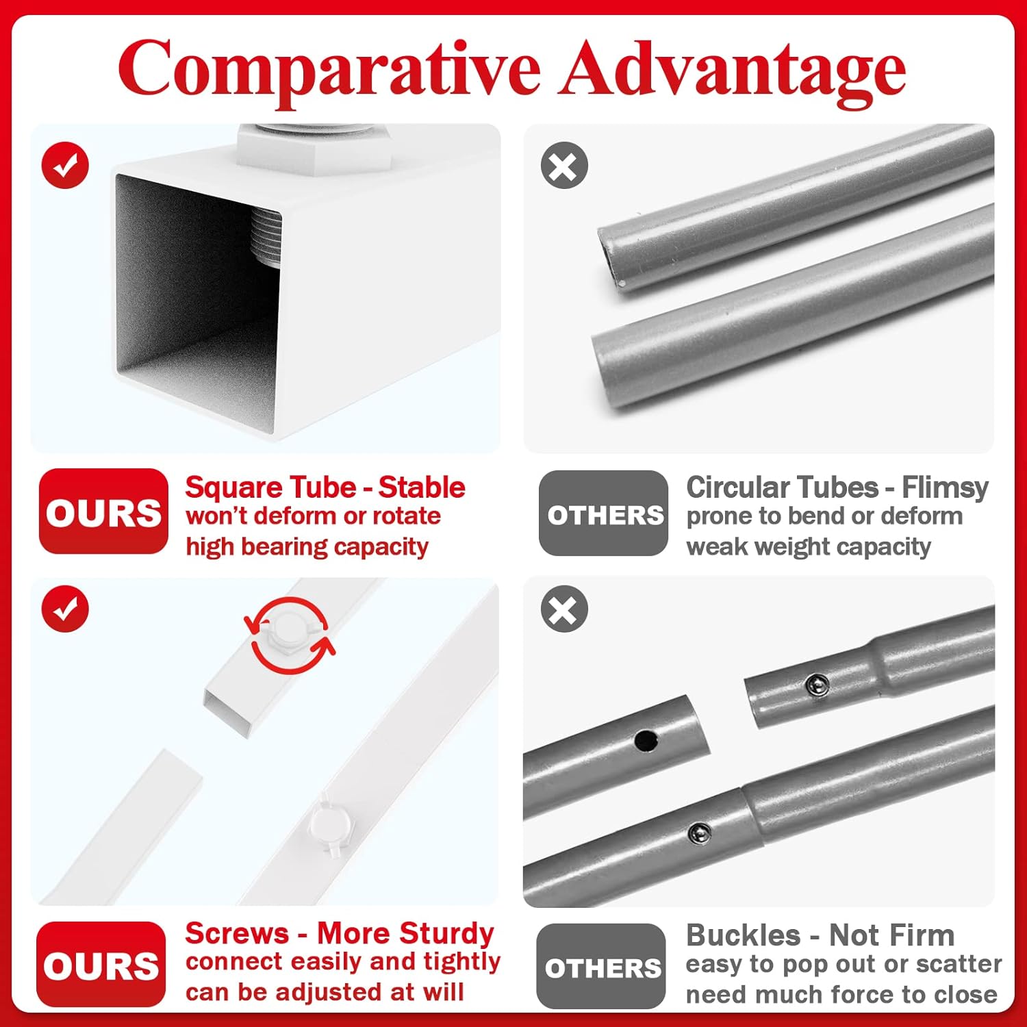 • 【Strong Metal Steel Material】The square metal arch bracket of the wedding arch is made of quality rust-proof square steel pipe, which is more stable than round pipes and not easy to be twisted. A reinforced cross bar is designed at the base to provide a firm balance support, safe and reliable.
