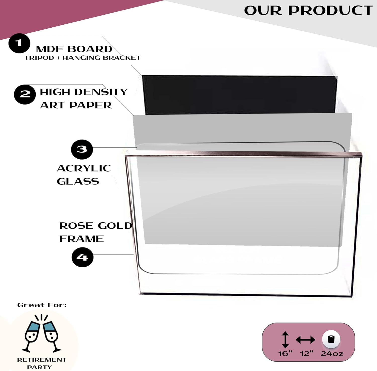 • Perfect for Any Room: The framed rose gold retirement card can be displayed in any room of the retiree's home or office as cherished reminders of their hard work and accomplishments.