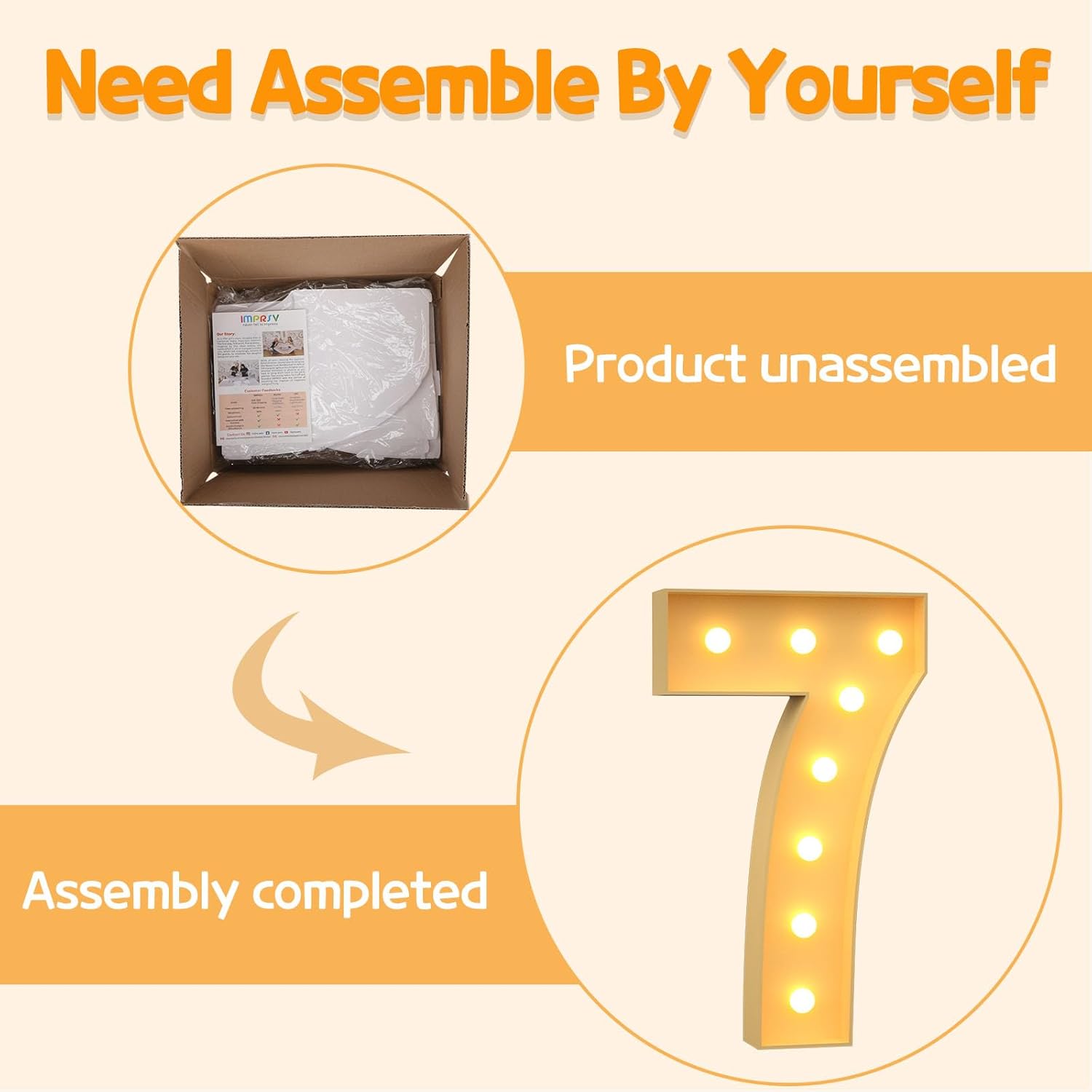 • Assembly Required: Our large marquee numbers is made from foam board and easy to assemble with our splicing mode. Just follow the numbered instructions to align and insert the bottom plate, and reinforce it with a hot glue gun. Then, you're done!