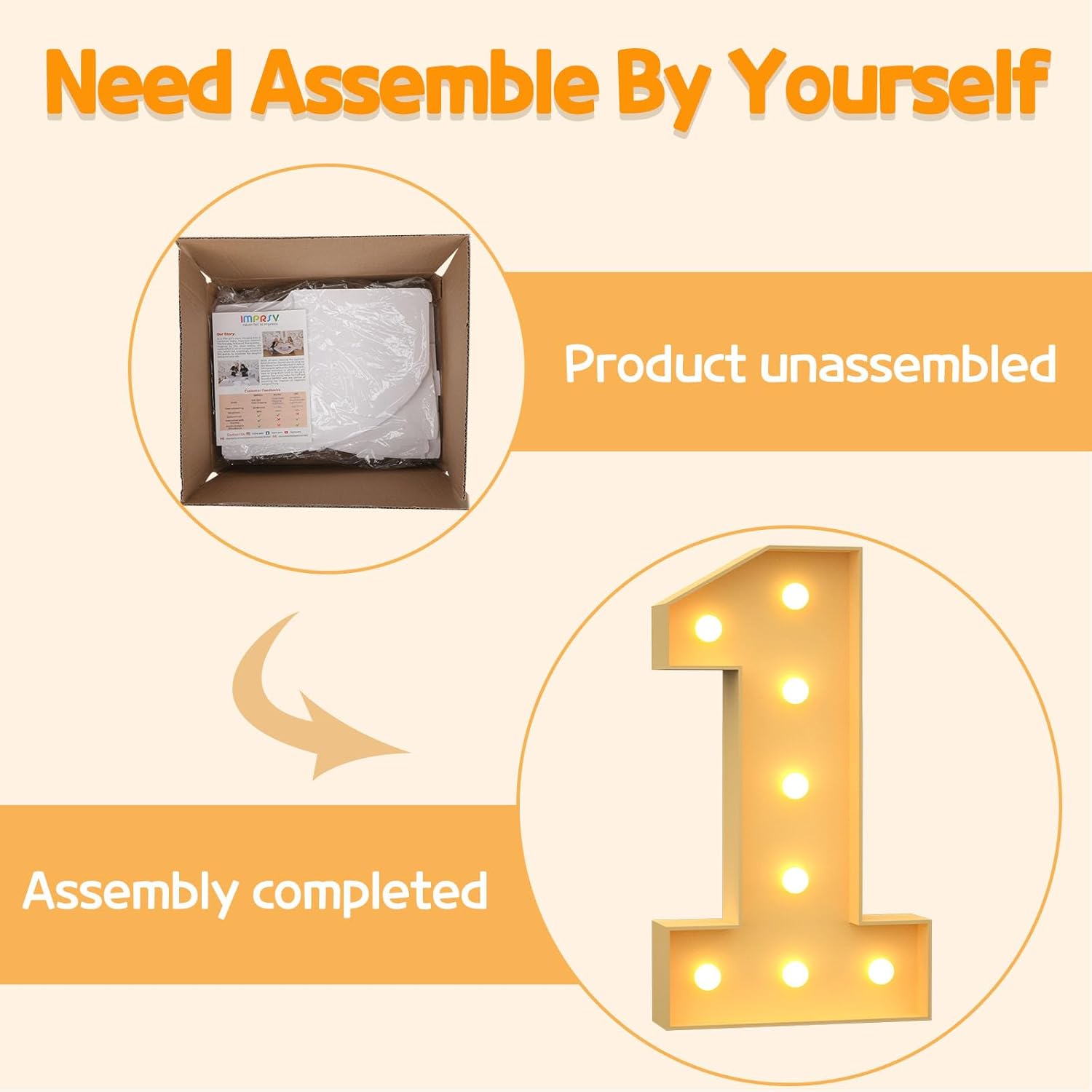 • Assembly Required: Our large marquee numbers is made from foam board and easy to assemble with our splicing mode. Just follow the numbered instructions to align and insert the bottom plate, and reinforce it with a hot glue gun. Then, you're done!