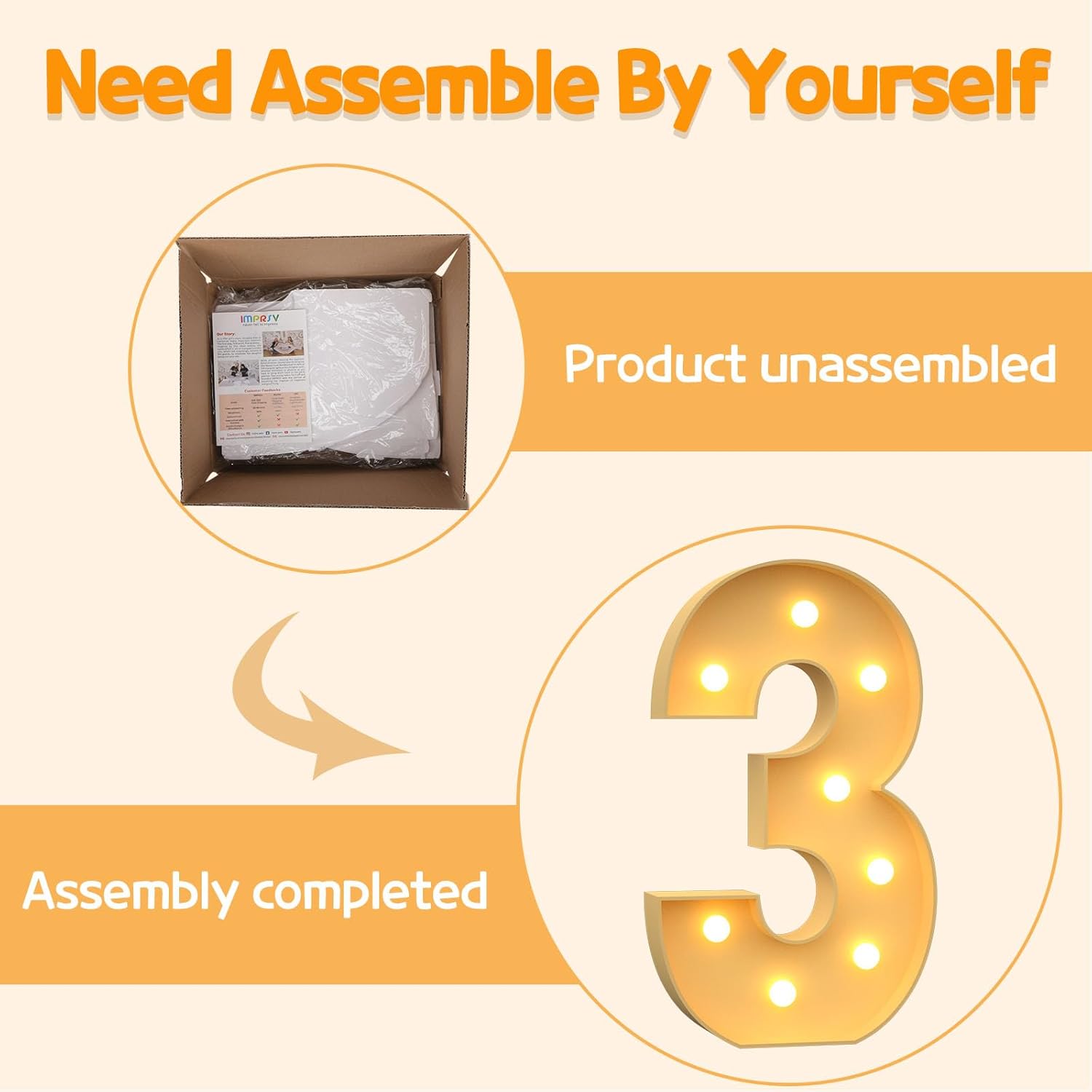 • Assembly Required: Our large marquee numbers is made from foam board and easy to assemble with our splicing mode. Just follow the numbered instructions to align and insert the bottom plate, and reinforce it with a hot glue gun. Then, you're done!