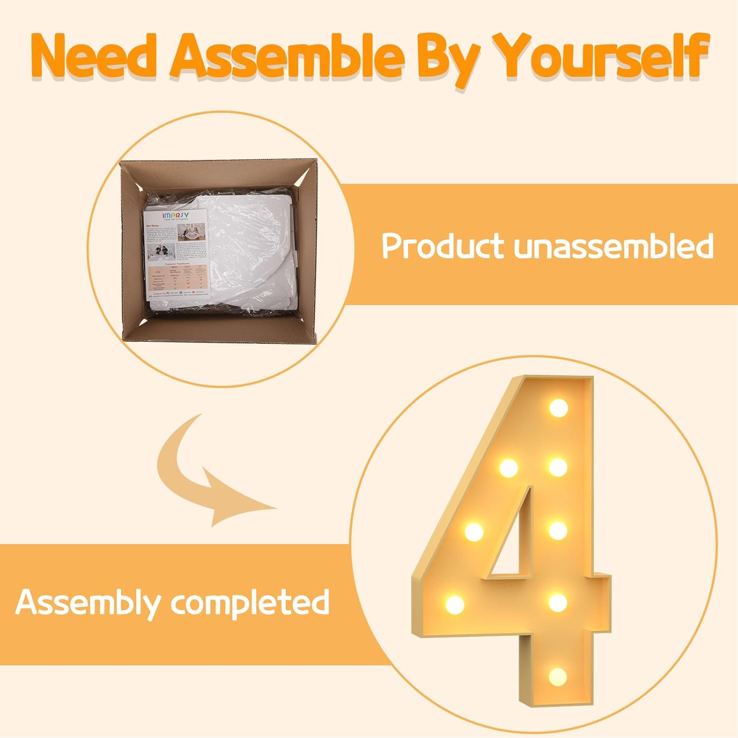 • Assembly Required: Our large marquee numbers is made from foam board and easy to assemble with our splicing mode. Just follow the numbered instructions to align and insert the bottom plate, and reinforce it with a hot glue gun. Then, you're done!