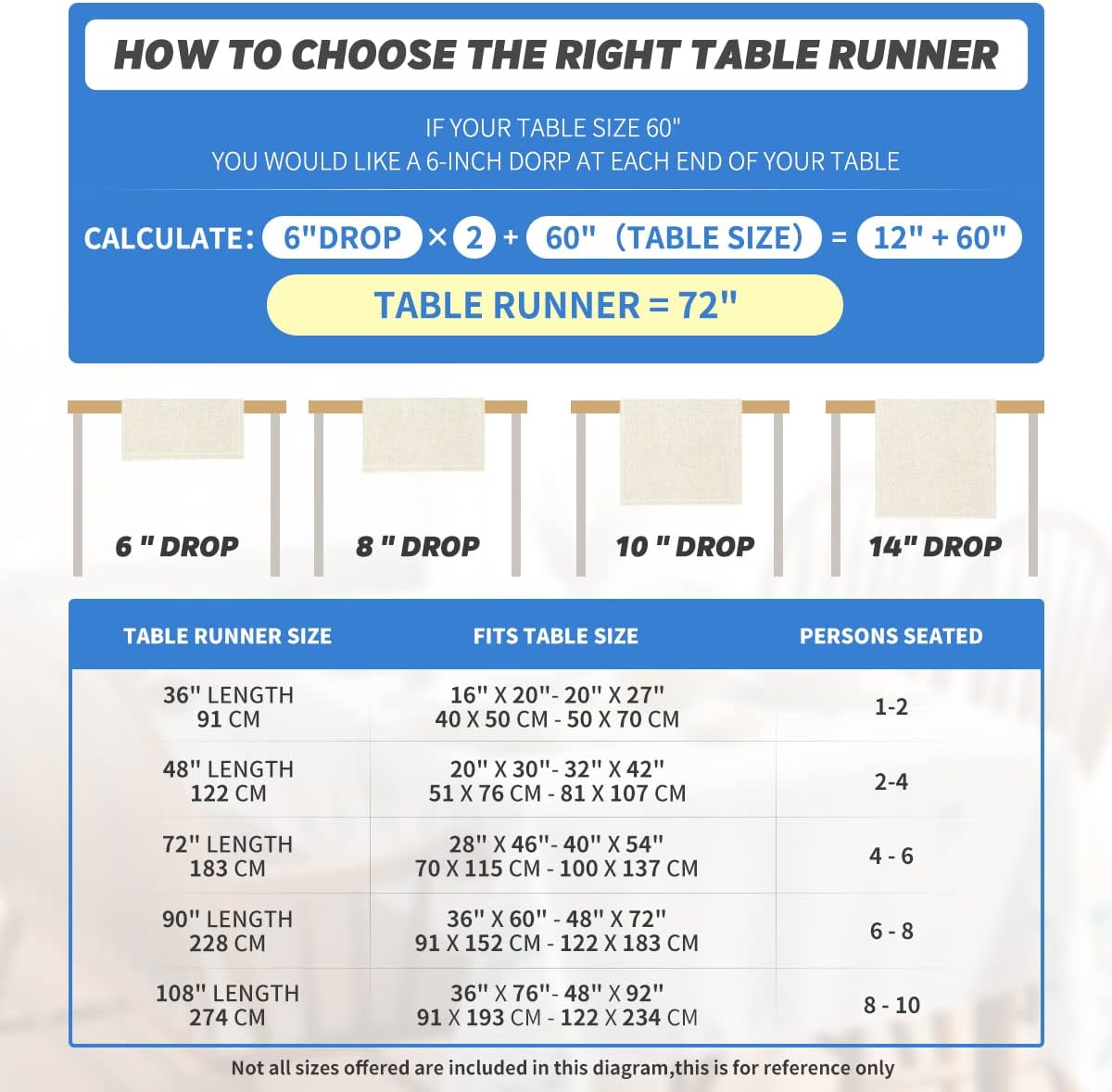 • Fits Table Size : This table runner is 13 x 108 inch, appropriate for a table that can seat 8-10 people, better match your table and give you a delightful dining experience