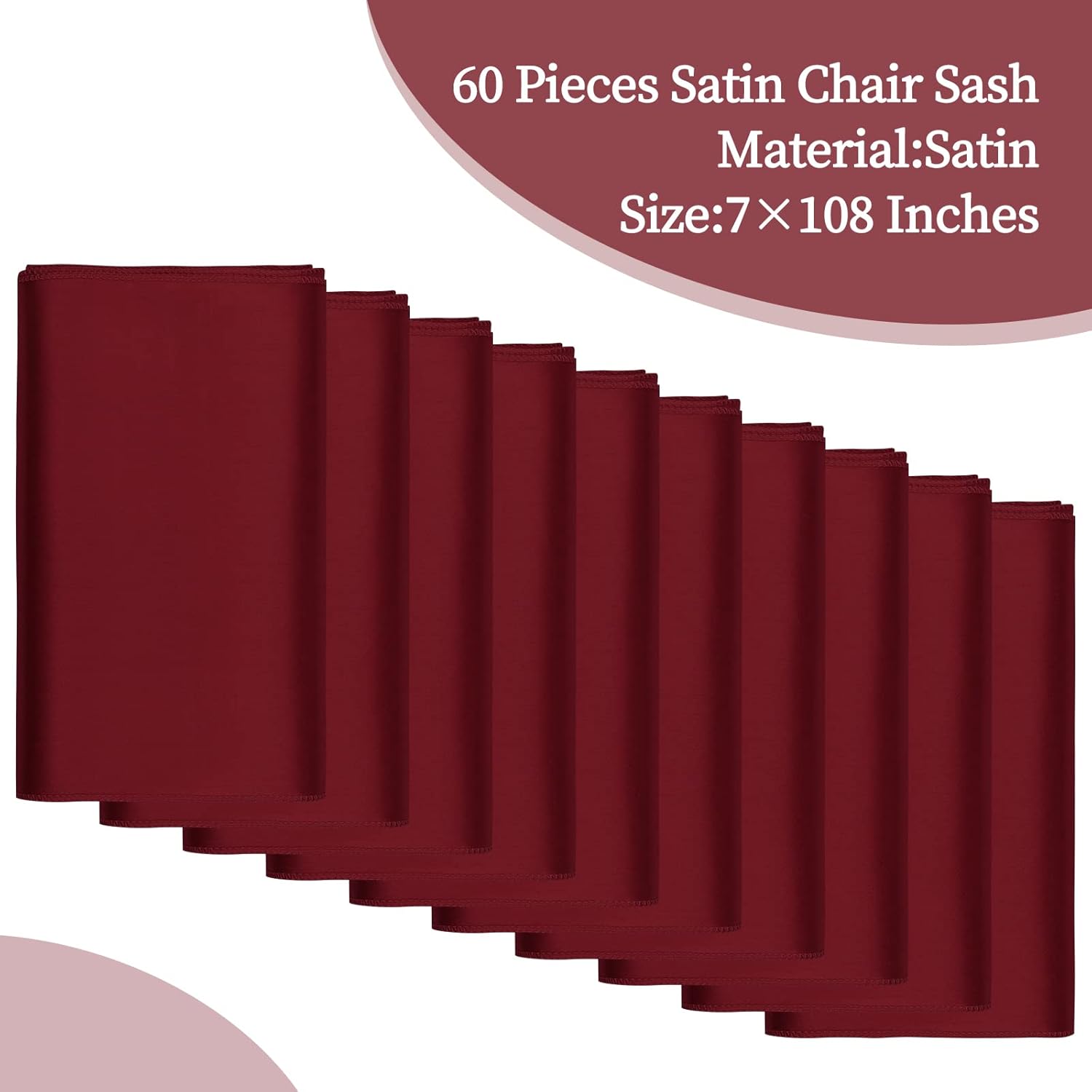fani 60 PCS Burgundy Satin Chair Sashes Bows Universal Chair Cover for Wedding Reception Restaurant Event Decoration Banquet,Party,Hotel Event Decorations (7 x 108 inch)