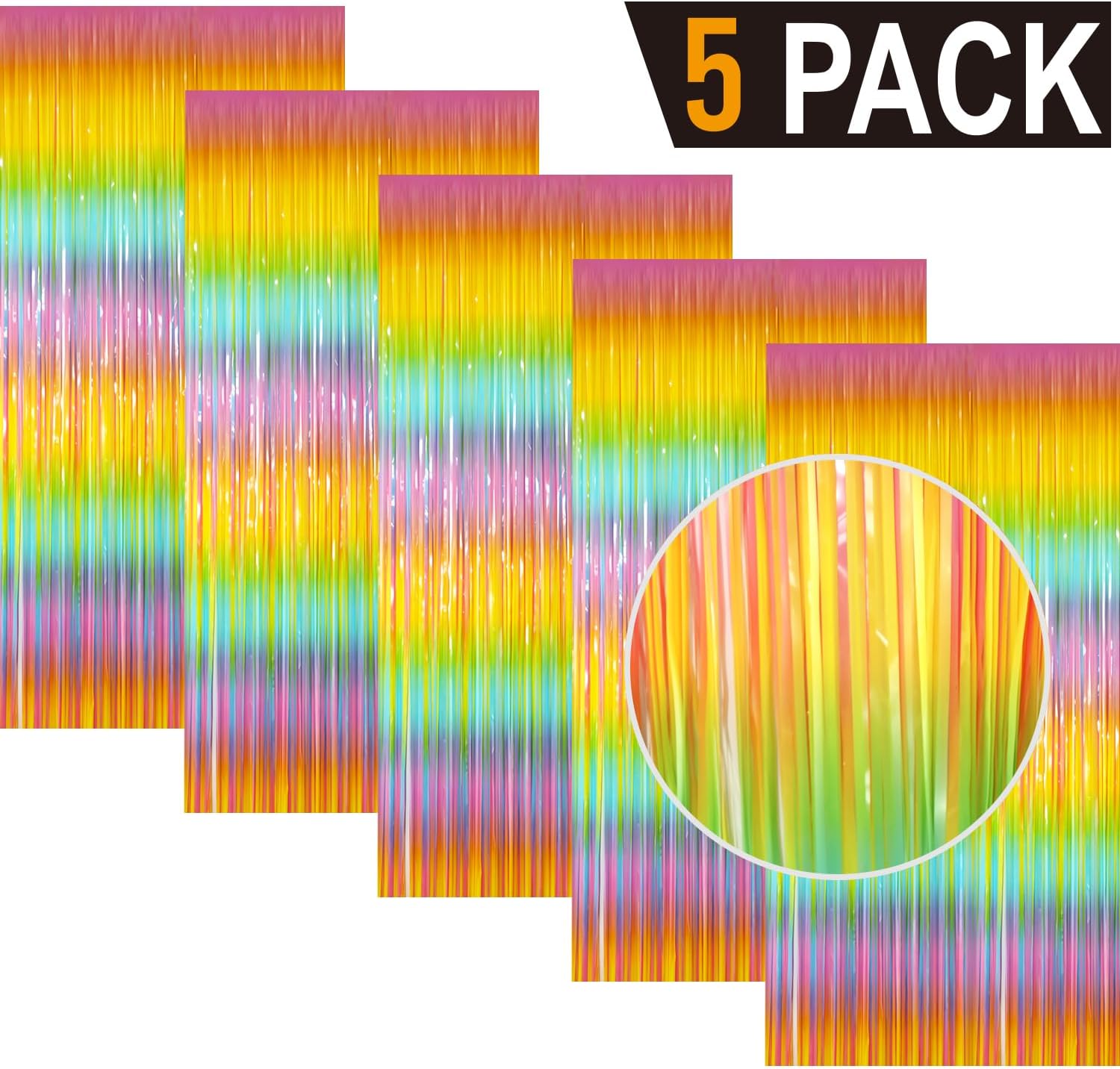 • Package Includes:5 pack foil fringe curtain,3.2 ft x9.8 ft each,suitable for hanging on a door or coverage a wall fully