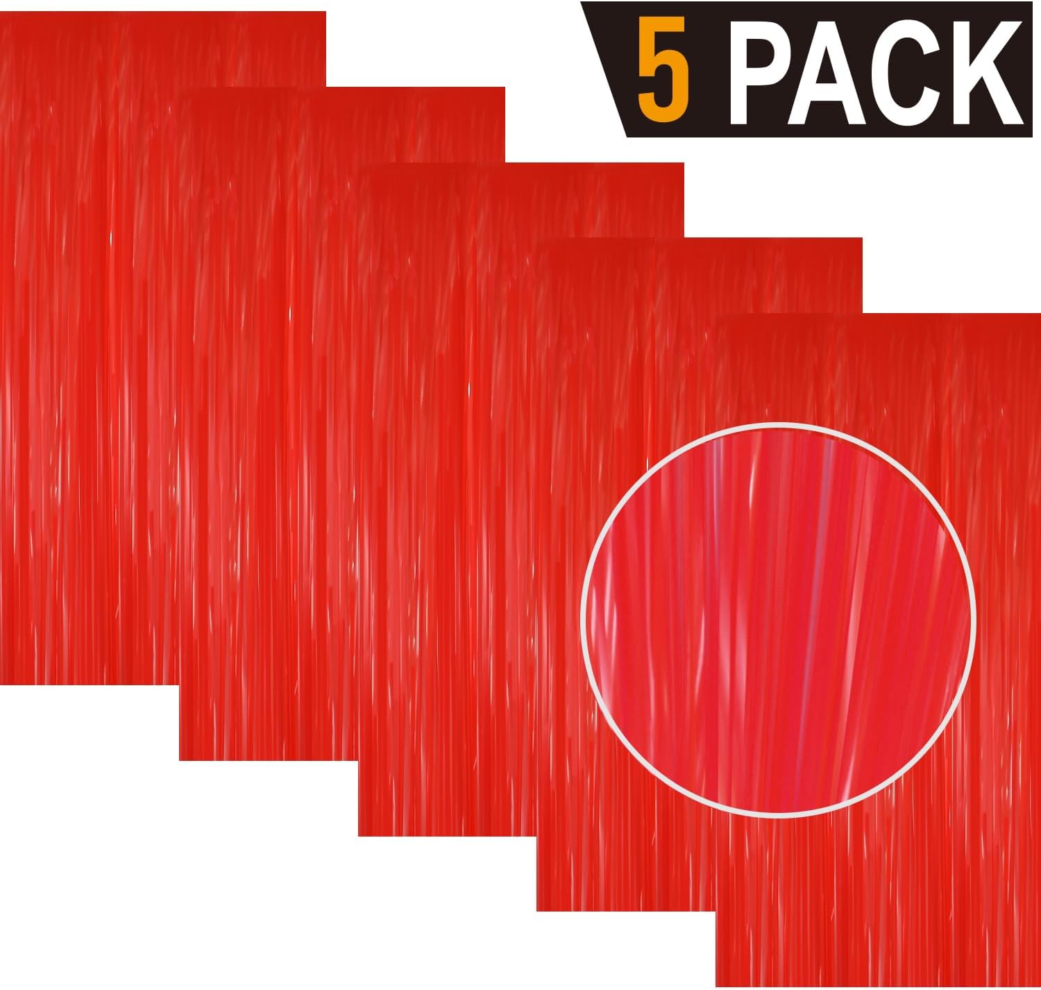 GOER 3.2 ft x 8.2 ft Metallic Tinsel Foil Fringe Curtains Party Photo Backdrop Party Streamers for Birthday,Graduation,New Year Eve Decorations Wedding Decor(5 Packs,Candy Red)
