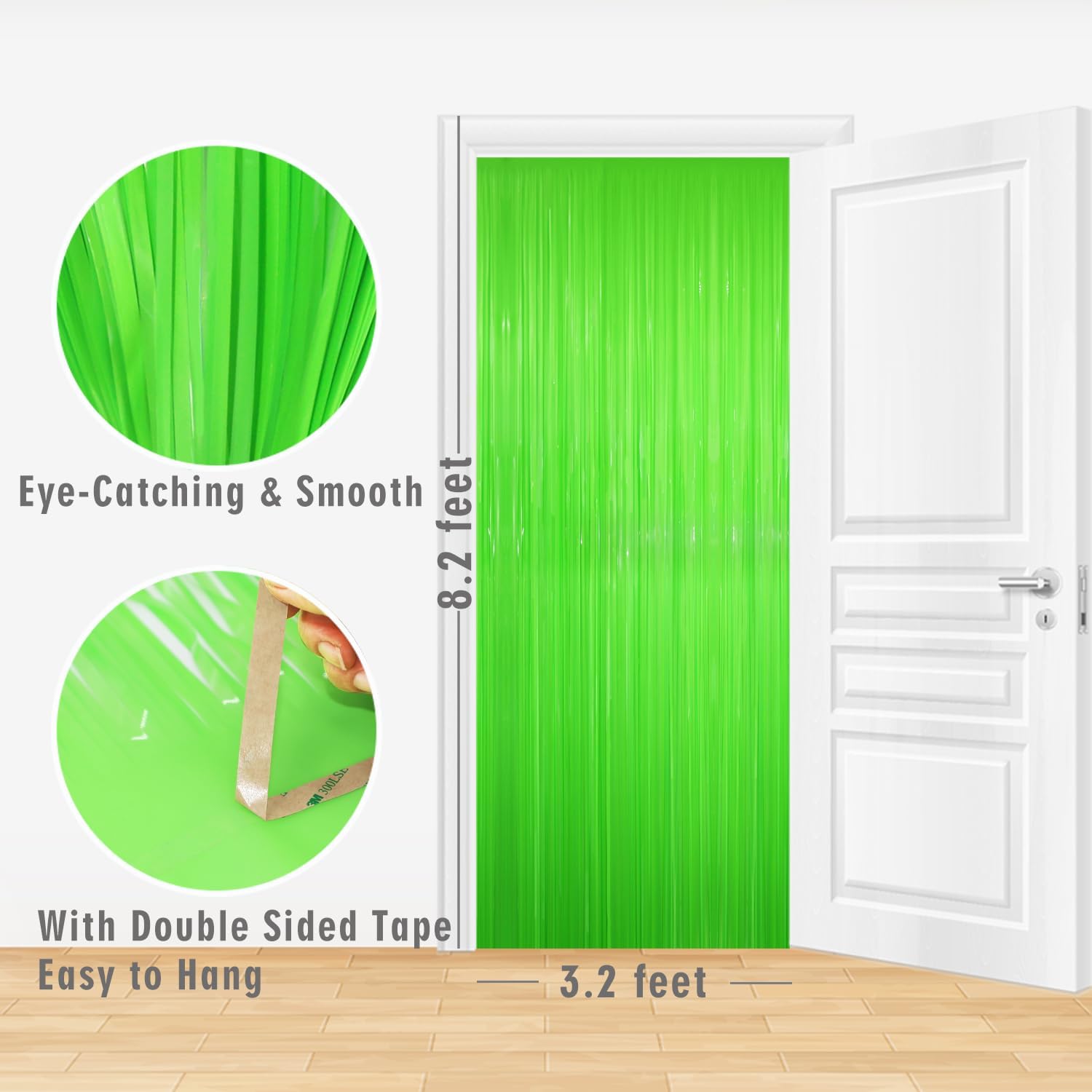 GOER 3.2 ft x 8.2 ft Metallic Tinsel Foil Fringe Curtains Party Photo Backdrop Party Streamers for Birthday,Graduation,New Year Eve Decorations Wedding Decor(1 Pack,Candy Lime Green)