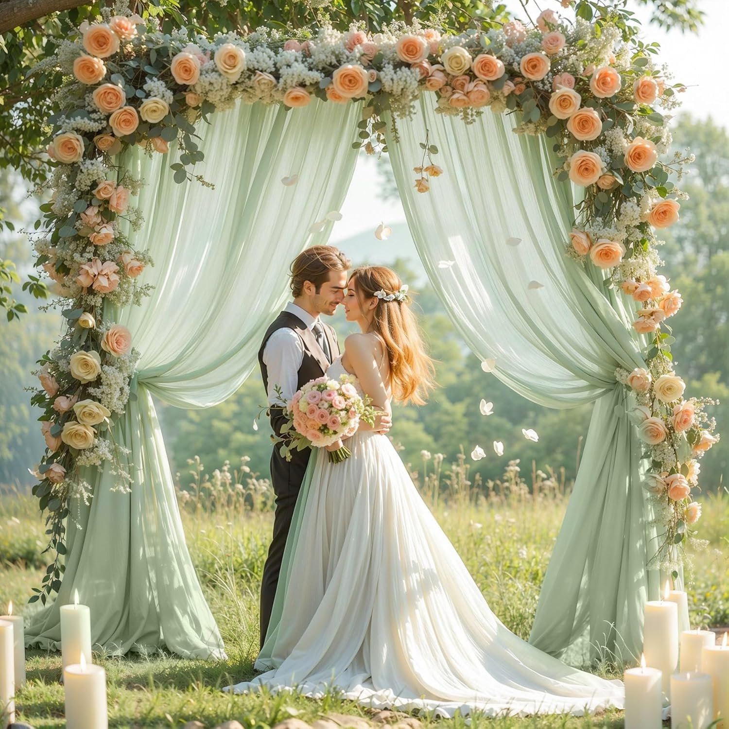 • What You Get: Including 1 panel sage green chiffon wedding arch fabric, each panel is 29" wide by 6 Yards (216 inches) long. Voile sheer chiffon draping fabric are good choice to decorate your wedding arch arbor.