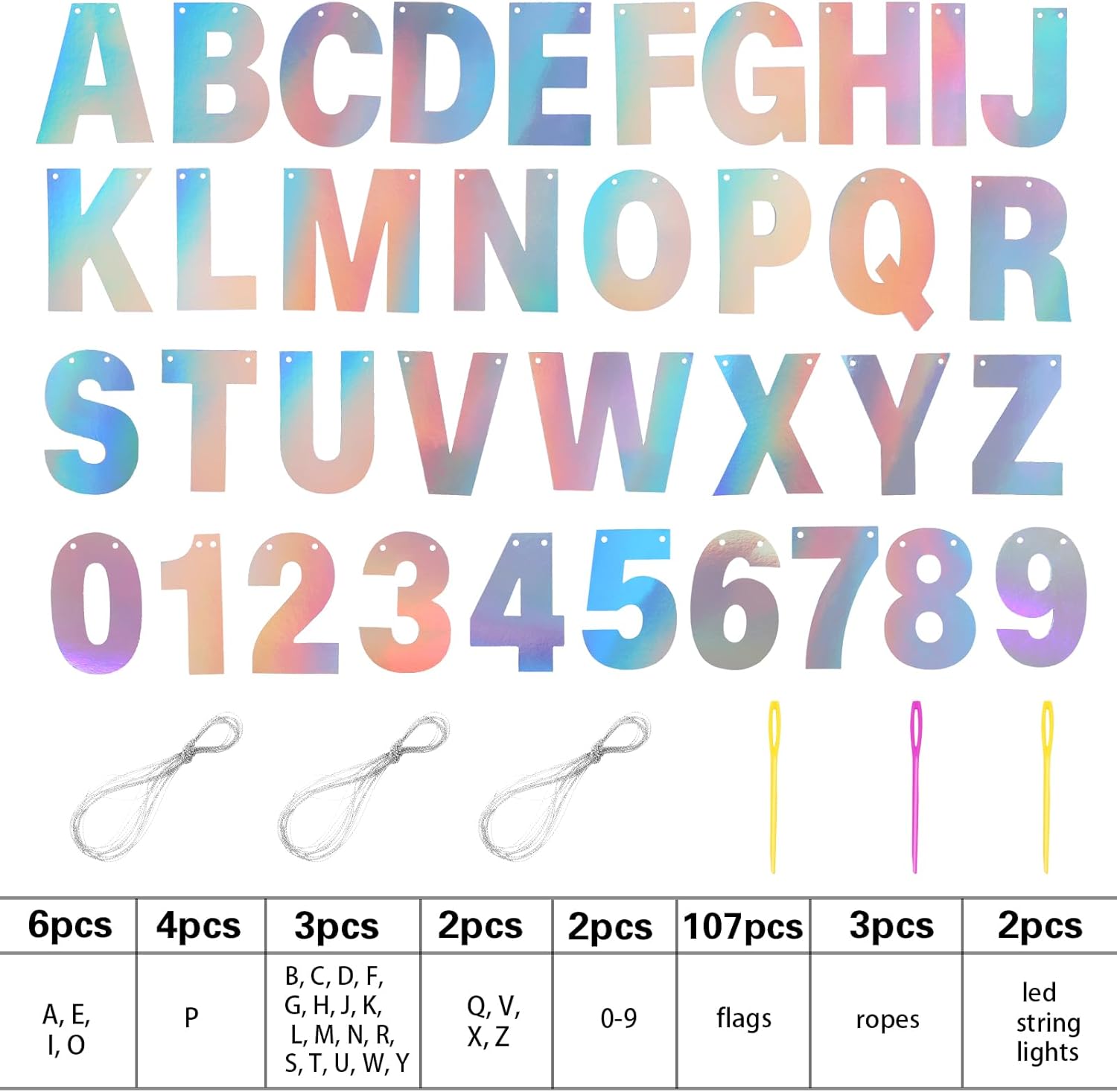• DIY Banner Kit with Letters: you will get 107 pieces of letters and numbers, including 6 'A, E, I, O' letters, 4 'P' letters, 3 'B, C, D, G, H, J, K, L, letter M, N, R, S, T, U, letter W, Y, F shape' letters, 2 'Q, V, X, Z' letters and 2 '0-9' numbers, come with 3 ropes; Nice combination meet your various parties decorative demands