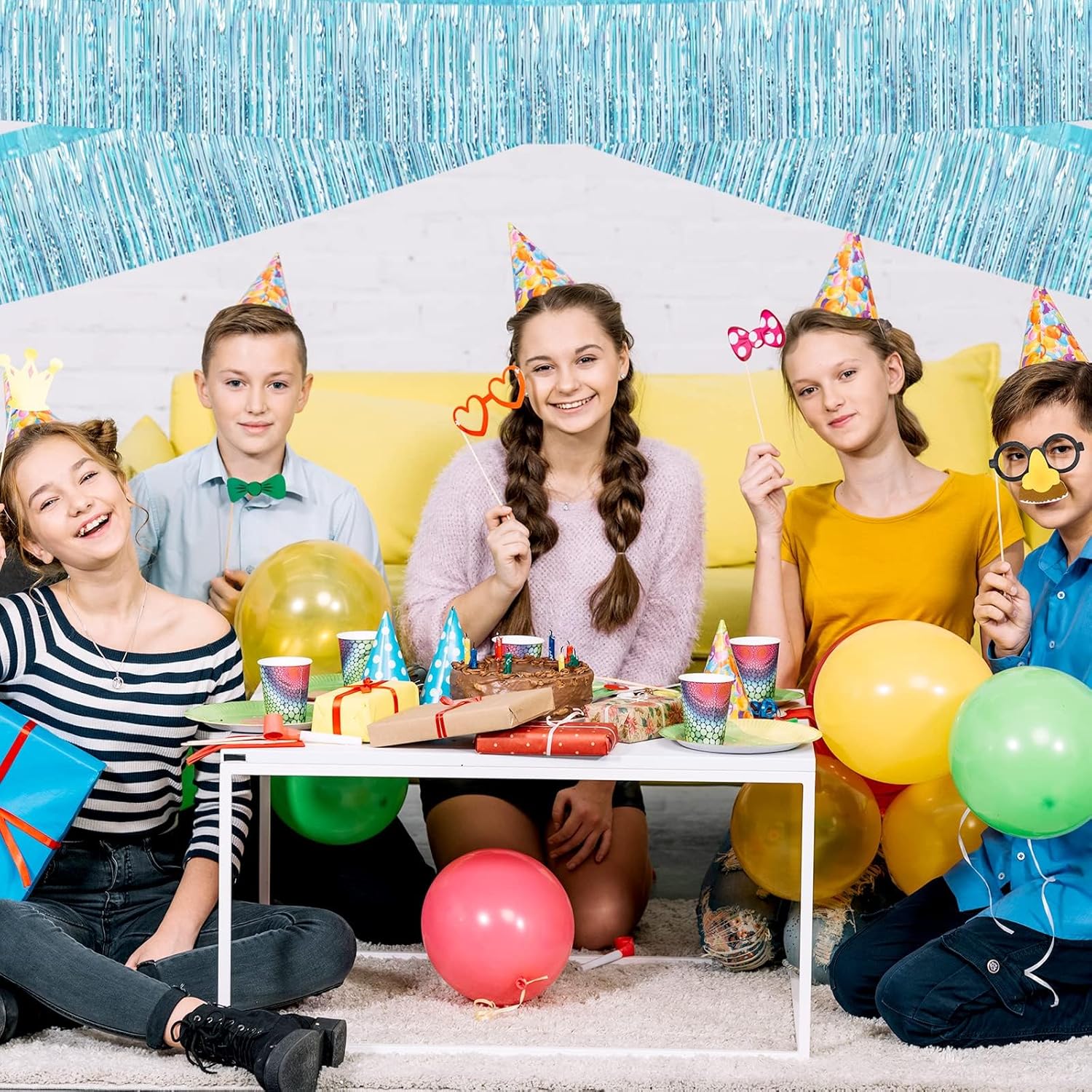 10 Pack 10 Feet Foil Fringe Garland Metallic Tinsel Streamers Banner Wall Hanging Curtain Backdrop for Parade Floats, Bachelorette, Wedding, Birthday, Halloween, Christma Party Decoration(Light Blue)