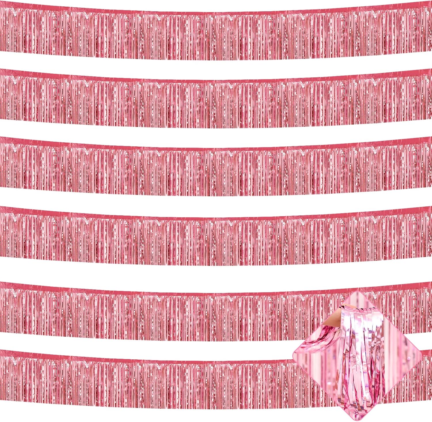 10 Pack 10 Feet Pink Foil Fringe Garland Metallic Tinsel Streamers Banner Wall Hanging Curtain Backdrop for Parade Floats, Bachelorette, Wedding, Birthday, Halloween, Christmas Party Decorations