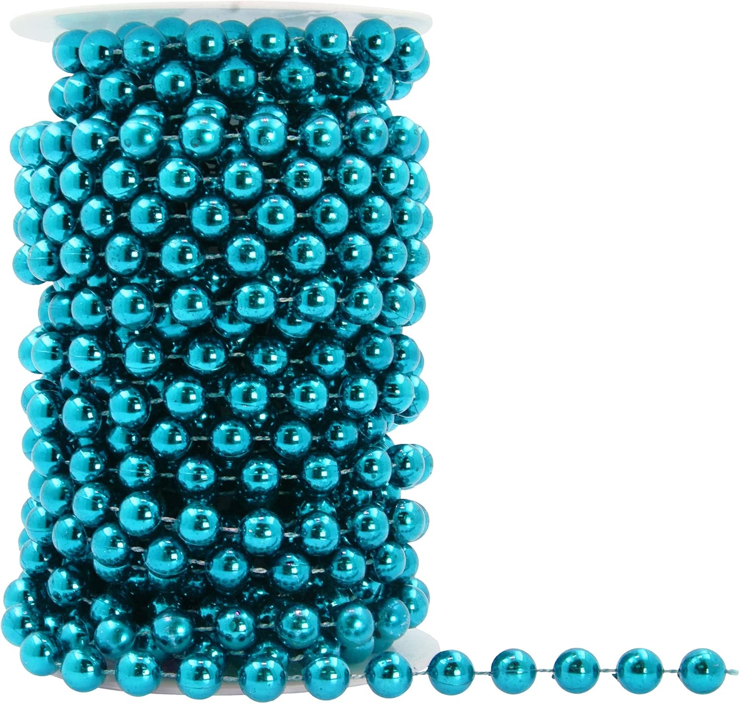 Mandala Crafts 10mm Faux Teal Pearl Beads Roll - 11 Yards Strand of Fake Pearls Chain Garlands Spool String for Christmas Tree, Wedding, Party, Vases, DIY Decoration
