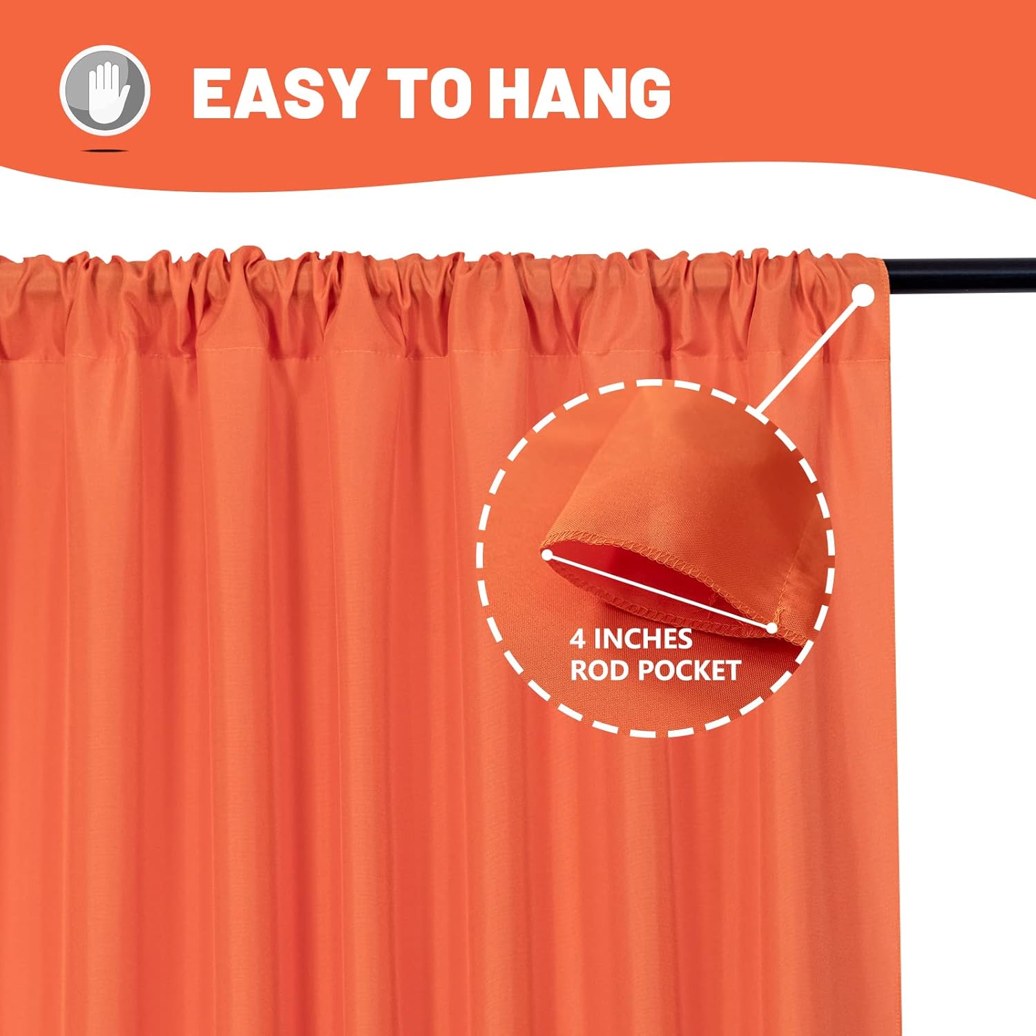 MYSKY HOME Orange Backdrop Curtains for Parties, Weddings, Stage - Light Filtering, Sliding Drapes, 5ft x 10ft, 2 Panels