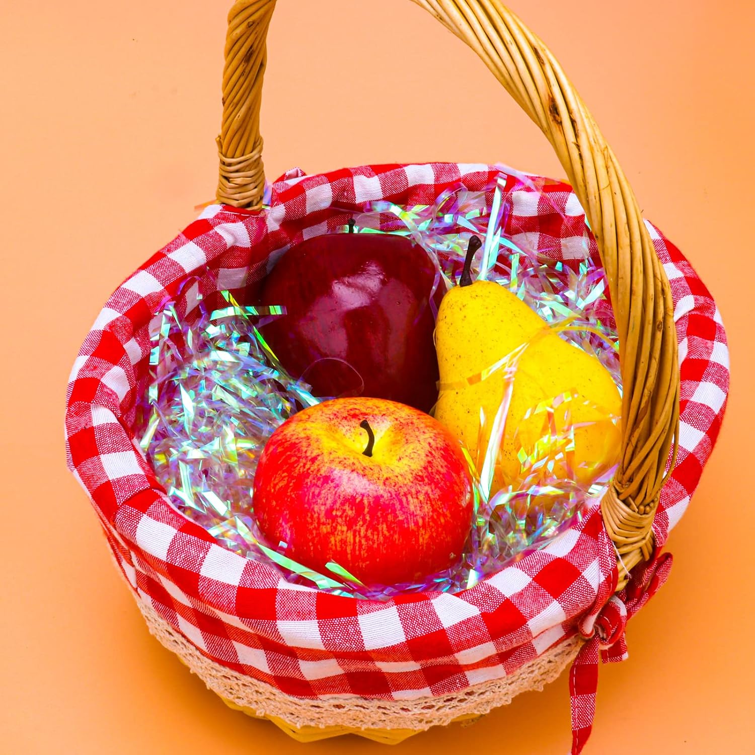 • 1. 💗Made of PP Plastic material: 150 Grams crinkle cut paper shred filler in Iridescent. Best gift box filler/ basket filler for choice. Very soft and lightweight for using as gift basket filler and protect your gifts from damage.
