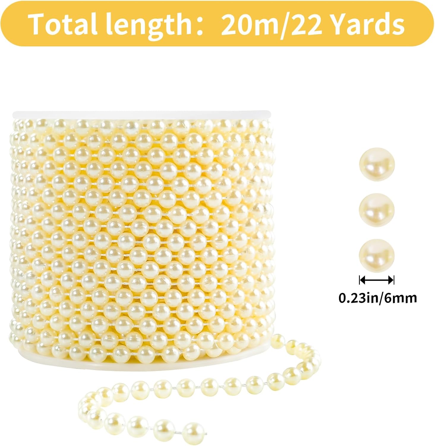 Faux Ivory Pearl Beads Garland - 6mm Christmas Tree Beads 22 Yards Ivory Pearl Strands Spool Pearl String Bead Roll for Wedding Party Christmas Tree Decoration(6mm 22Yards, Ivory)