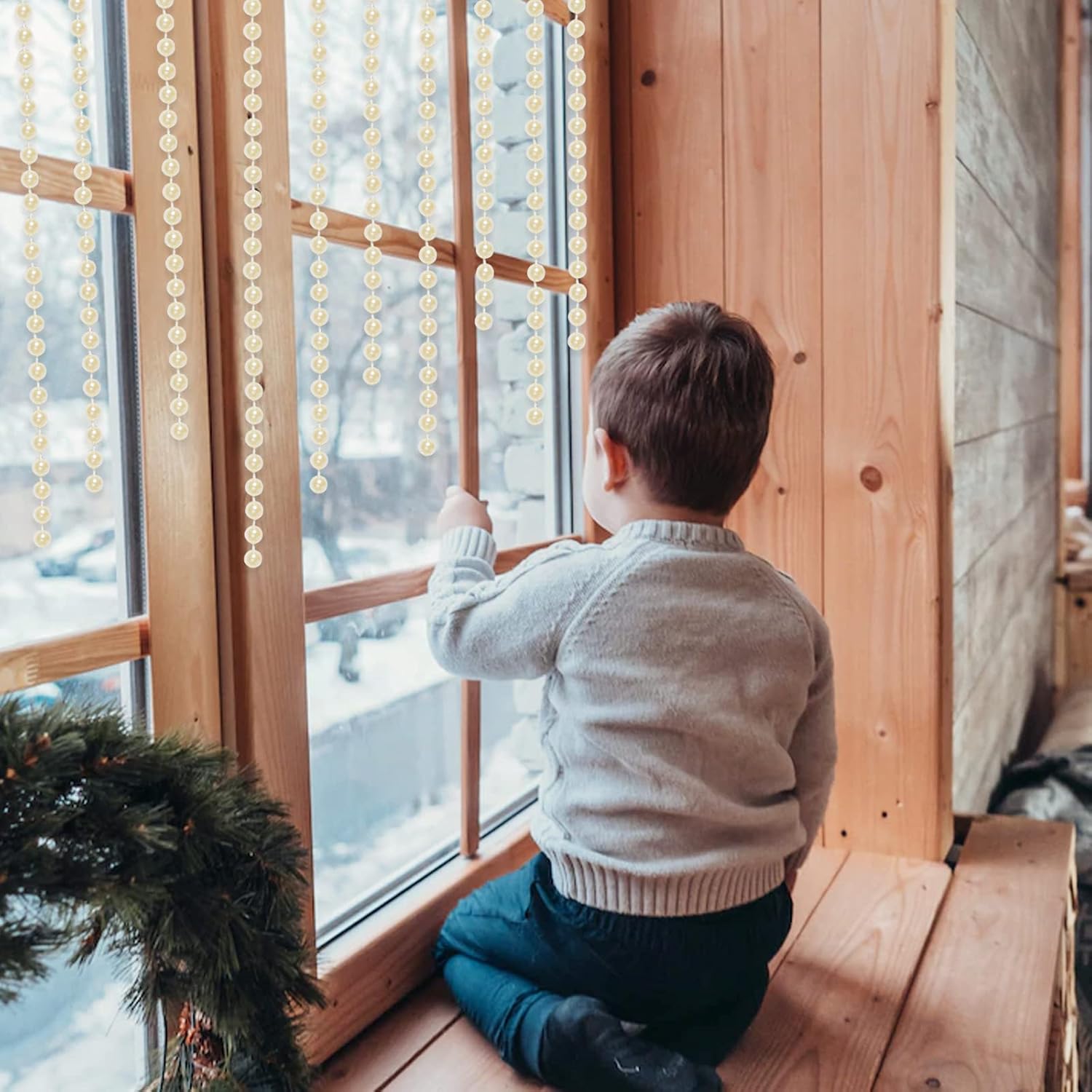 • Faux Pearl Beads Garland: Faux pearl rolls can be cut to the desired length. You can easily adjust the pearl strand length and cut to any length you need for your ornaments or DIY crafts. Each pearl is melted on a sturdy nylon cord, so it won't scatter, and it's easy to handle