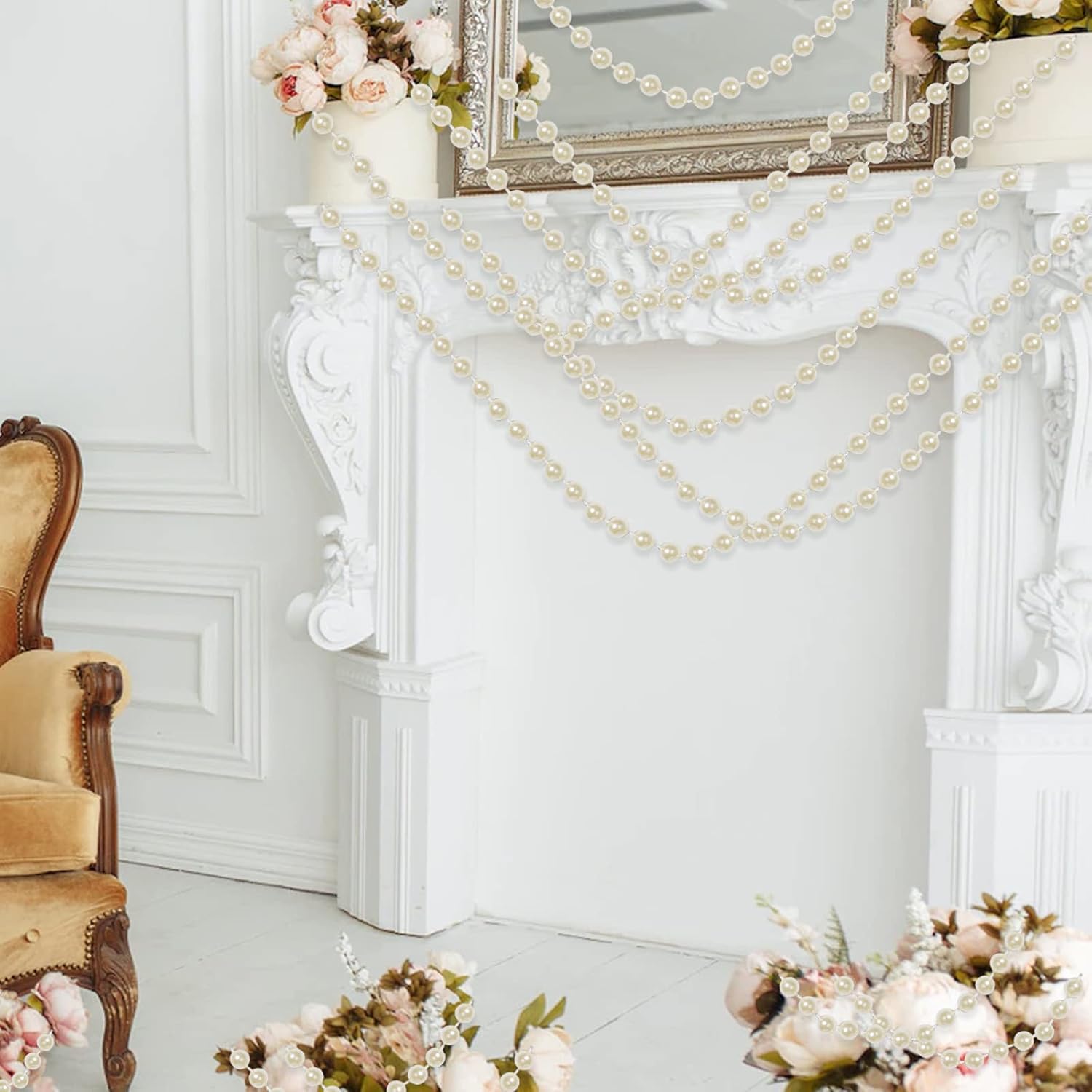 • Faux Pearl Garland: Add the elegance of pearls to your decorations, add sparkle and glamour to your handicrafts with this pearl garland