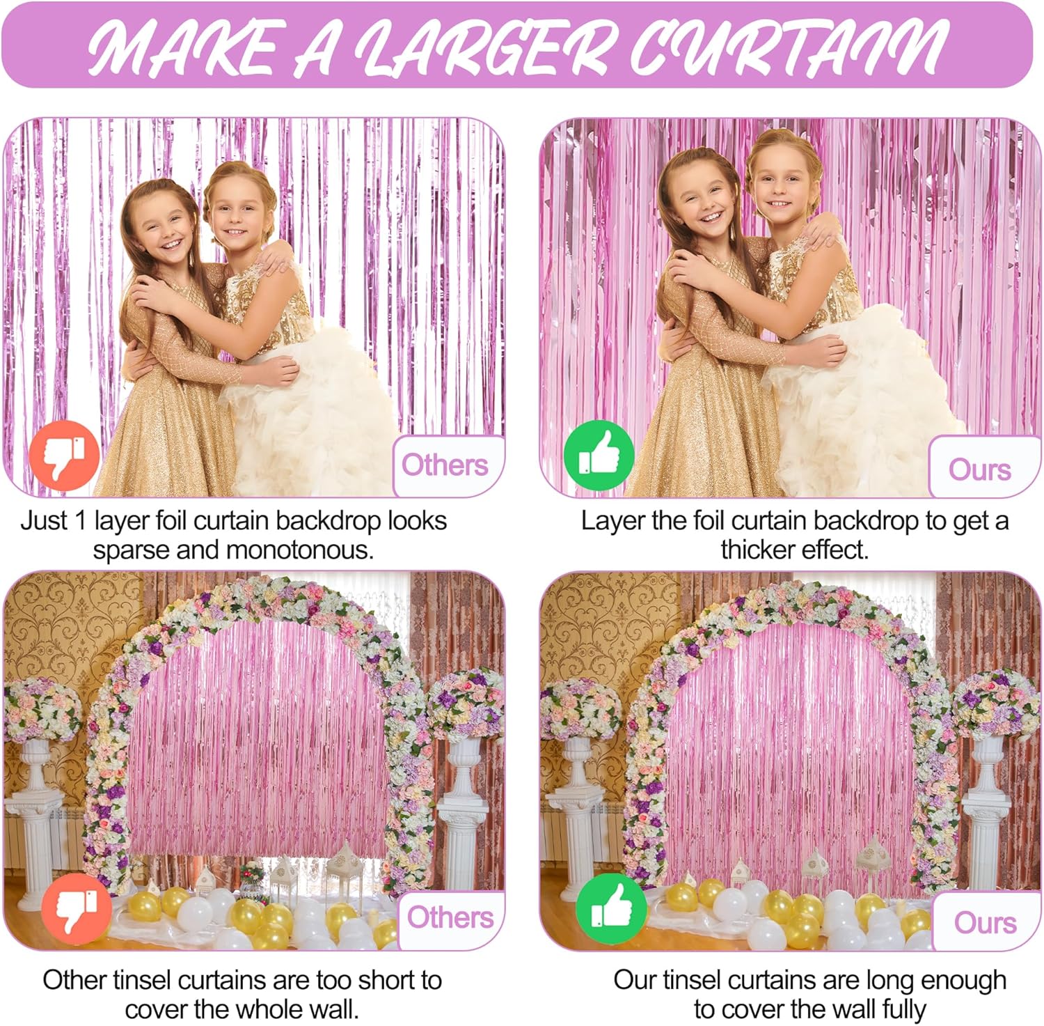 Crosize 3 Pack 3.3 x 9.9 ft Pink Foil Fringe Glitter Curtains Party Decorations, Tinsel Backdrop for Parties, Door Streamers for Birthday, Photo Booth Backdrops, Party Decor