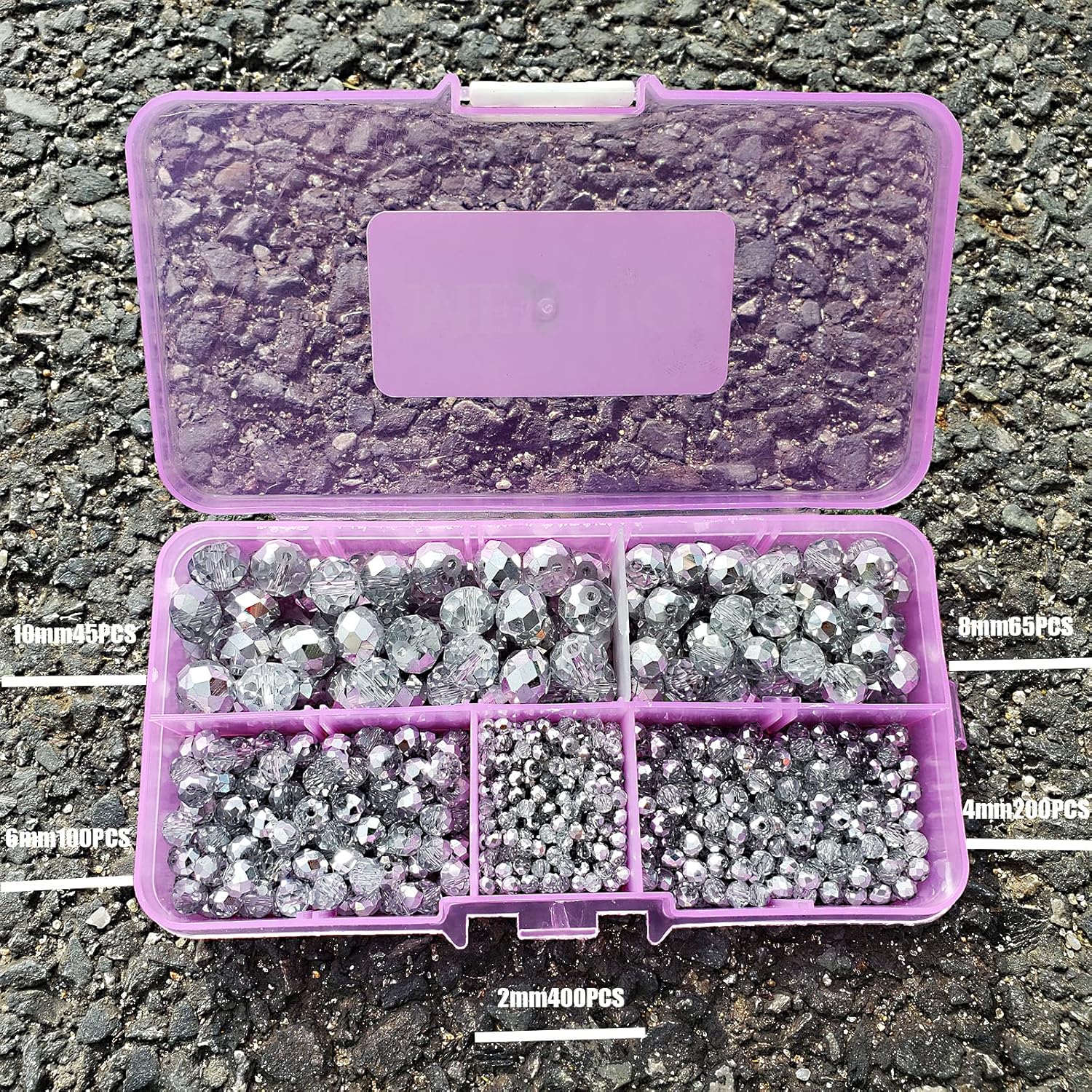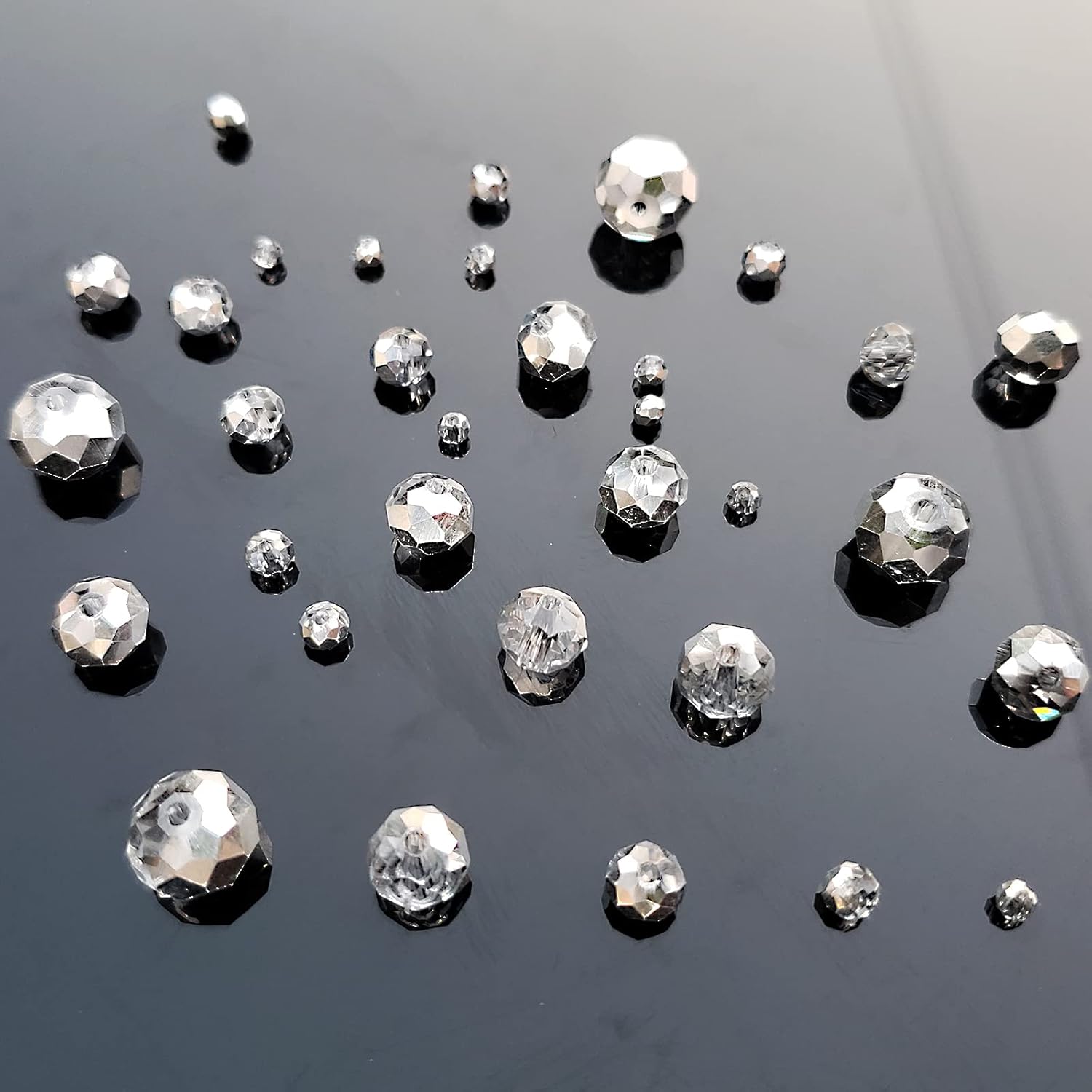 • 【PACKAGING and SIZE】Package includes 810Pcs half silver rondelle crystal glass beads in 5 different sizes ,400pcs 2mm,200pcs 4mm,100pcs 6mm,65pcs 8mm, 45pcs 10mm faceted rondelle crystal glass beads.Sufficient quantity and various sizes to meet your various needs, you can combine them together to create delicate handicrafts according to your own preference.In addition, we provide you with some stretchy cord and add an organza bag.Let your family and friends enjoy DIY happy time together.