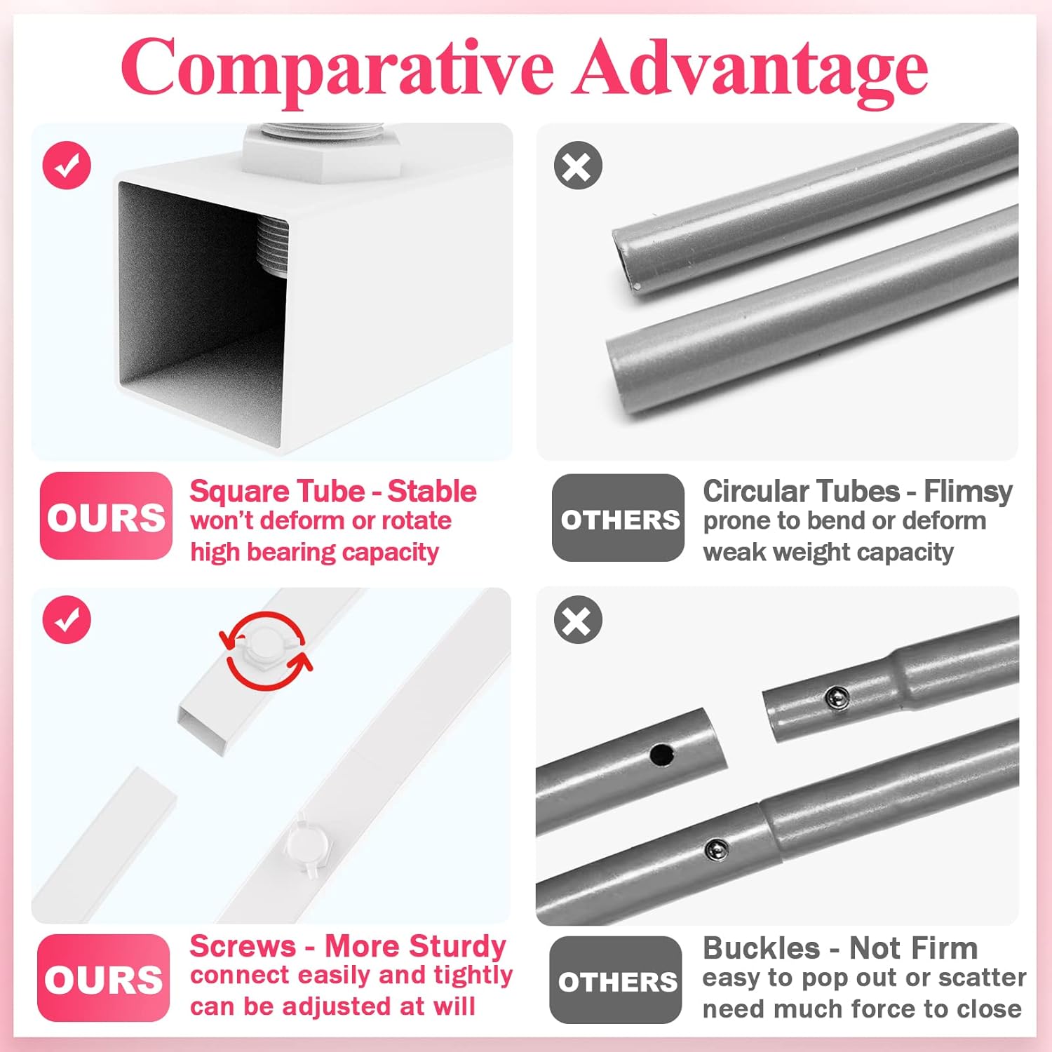 • 【Wide Application】Square wedding arch stand is suitable for wedding, bridal shower, photo booth backdrops, Birthday party, garden, school opening ceremonies, graduation party decoration, christmas decoration, New Years Decoration and Photography.