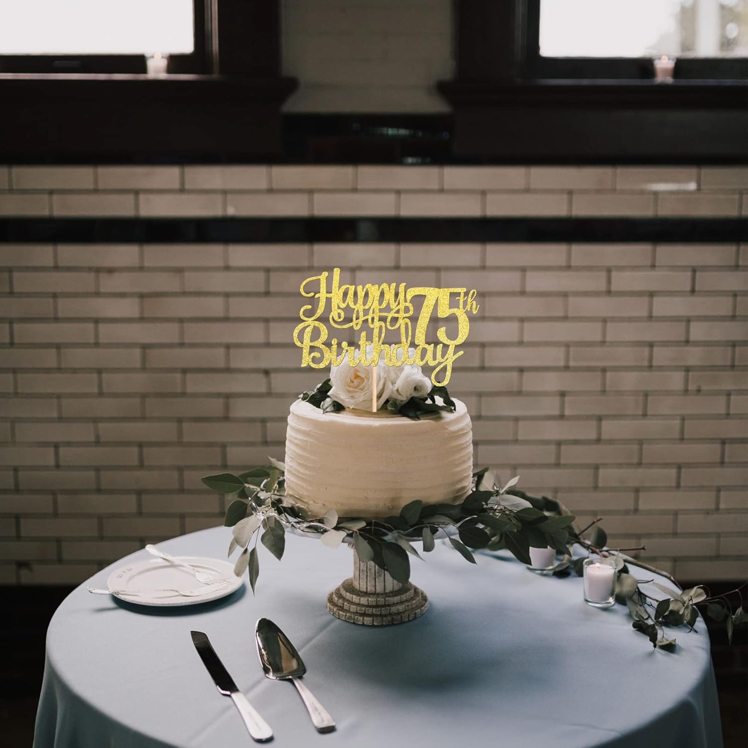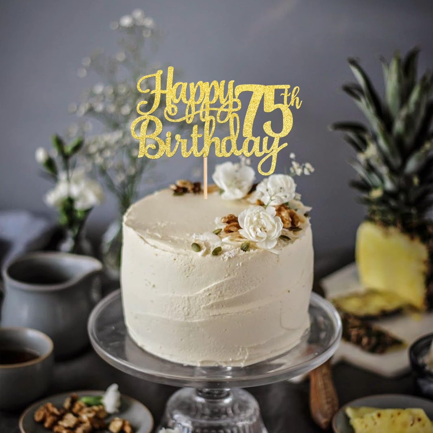 1 PCS Happy 75th Birthday Cake Topper Gold Glitter Cheers to 75 Years Birthday Cake Pick 75 Fabulous Cake Decoration for Happy 75th Birthday Theme Party Decorations Supplies