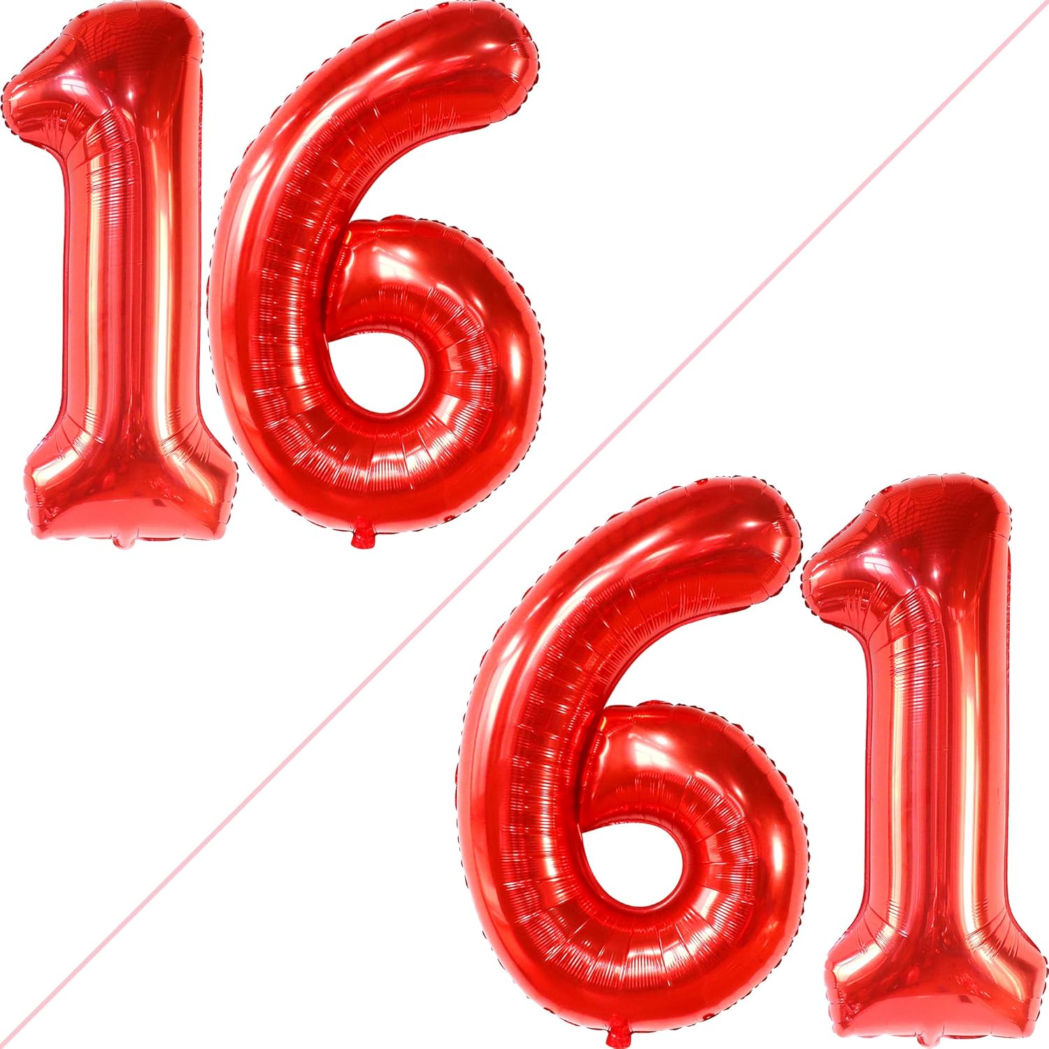 • GIANT SIZE - 40 INCH | BEAUTIFUL VIBRANT RED BIRTHDAY BALLOONS - This Red 16 balloons for birthday is numbers 40 inch is the party complement you shouldn’t miss for 16th birthday for boys red. Add a touch of elegance with this 40-inch Huge red sweet 16 Foil Balloon by using 1 Red Ribbon and 1 Straw. Pair 16 birthday balloons with other red number balloons and red balloons for sixteen birthday red decorations boy, Sweet 16 party decorations red.