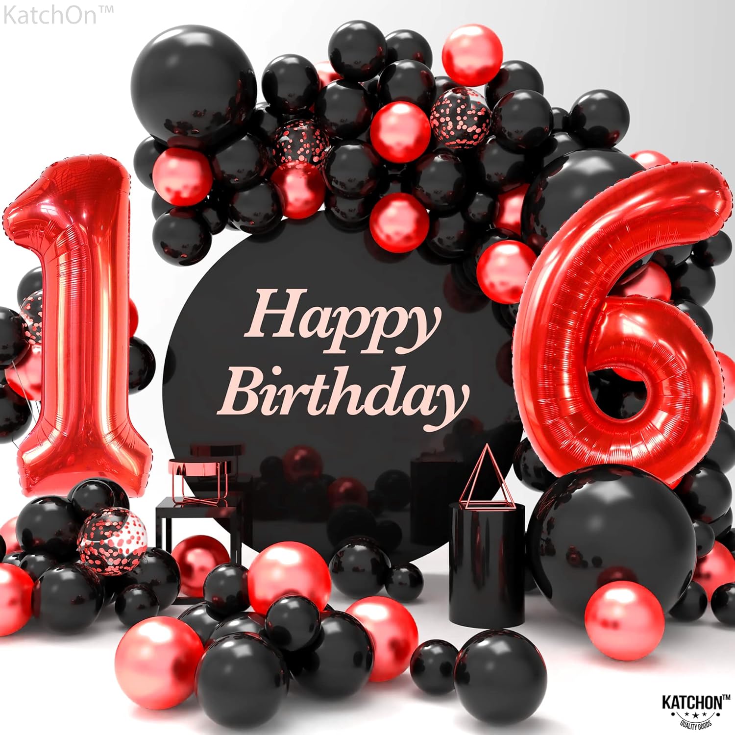 KatchOn, Red 16 Number Balloons - Huge, 40 Inch | 16th Birthday Balloons Red for 16th Birthday Decorations for Boys Red | 16 Balloon Numbers | Red Sweet 16 Balloons, Red Sweet 16 Birthday Decorations